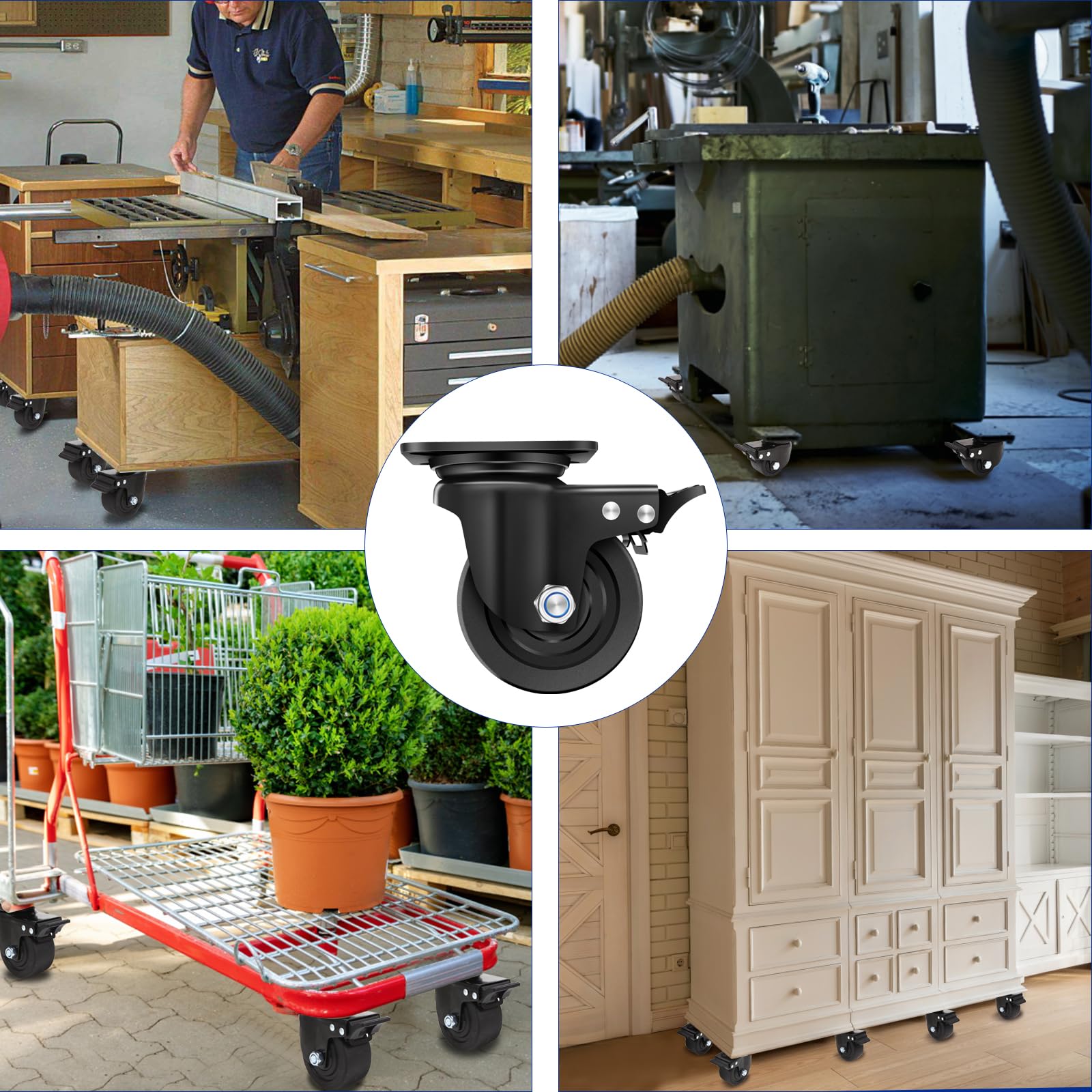 Universal Compatibility: Heavy duty casters wheels seamlessly integrates with hand trucks, industrial equipment, furniture, storage systems, and toolboxes. Perfect for factories, warehouses, garages, or outdoor projects—simplify heavy lifting across any environment