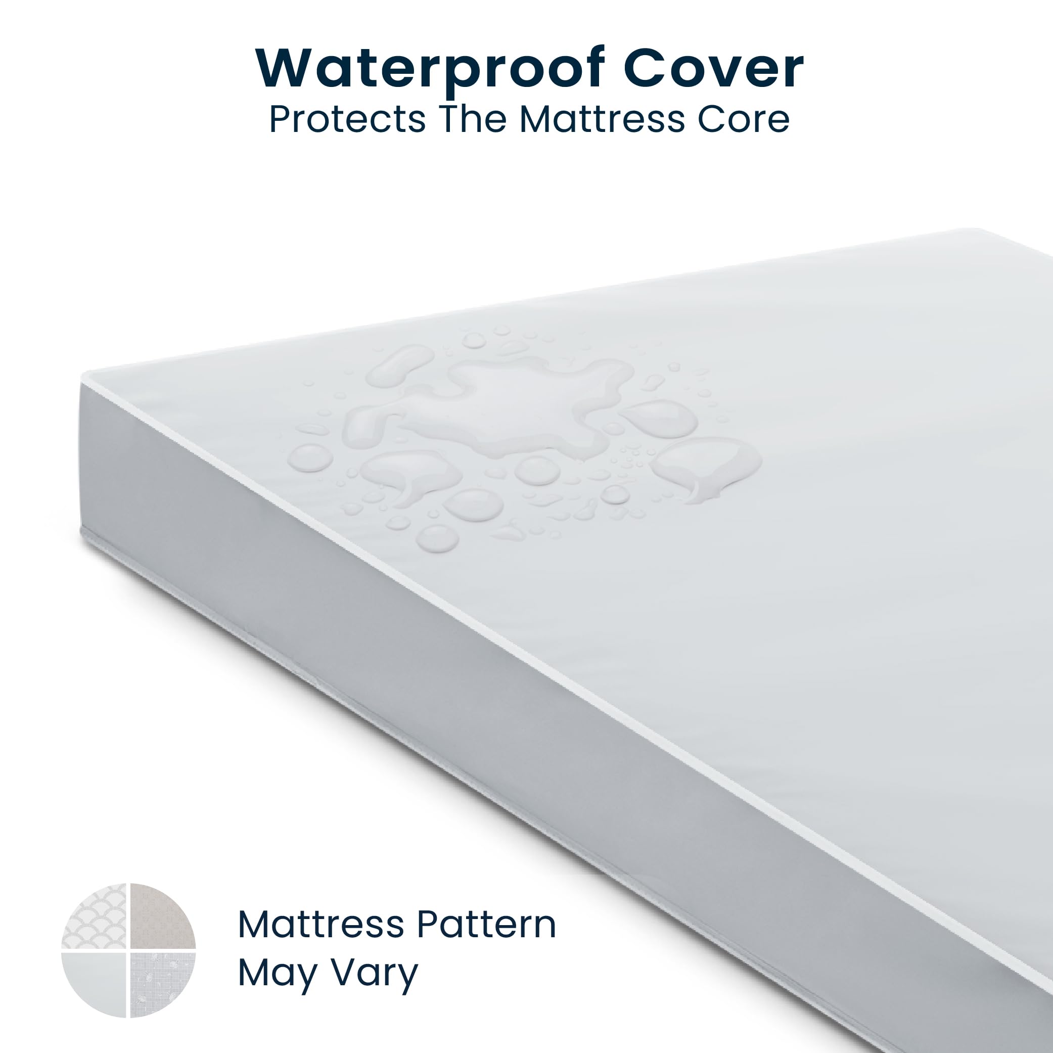 WATERPROOF COVER: Waterproof for easy cleaning | Pattern on mattress cover may vary | Fiber core made from recycled bottles delivers ideal firmness level while helping save over 300 bottles from the landfill