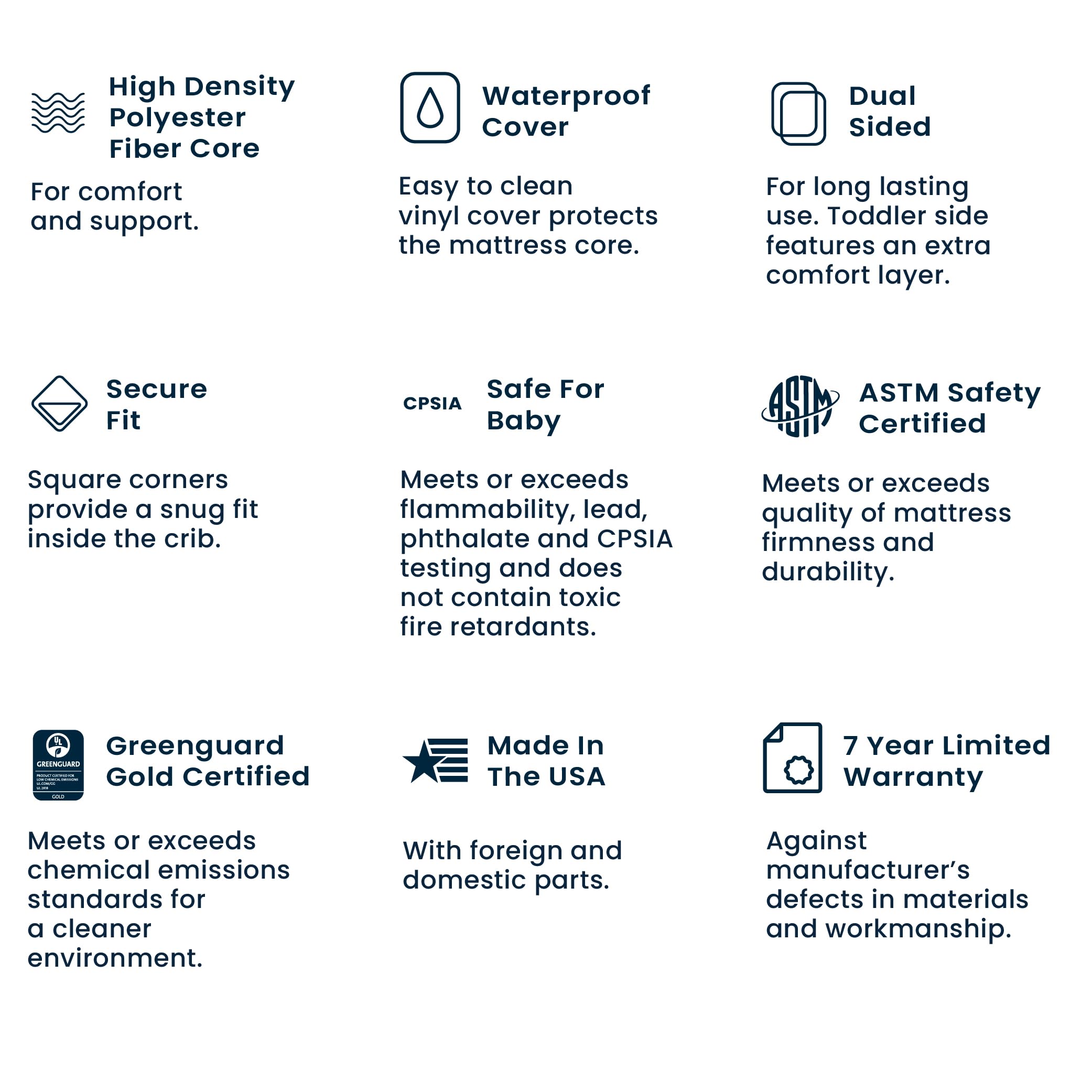 CERTIFIED SAFE: GREENGUARD Gold certified for cleaner indoor air quality and low chemical emissions to help create a healthier sleep space | JPMA certified