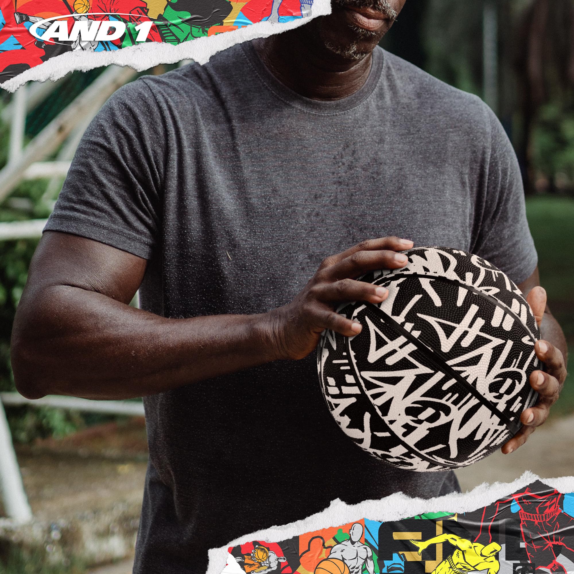 OFFICIAL SIZE BALL: The AND1 Fantom Graffiti full size basketball is regulation size 7 (29. 5”) and weight with easy to palm grip.