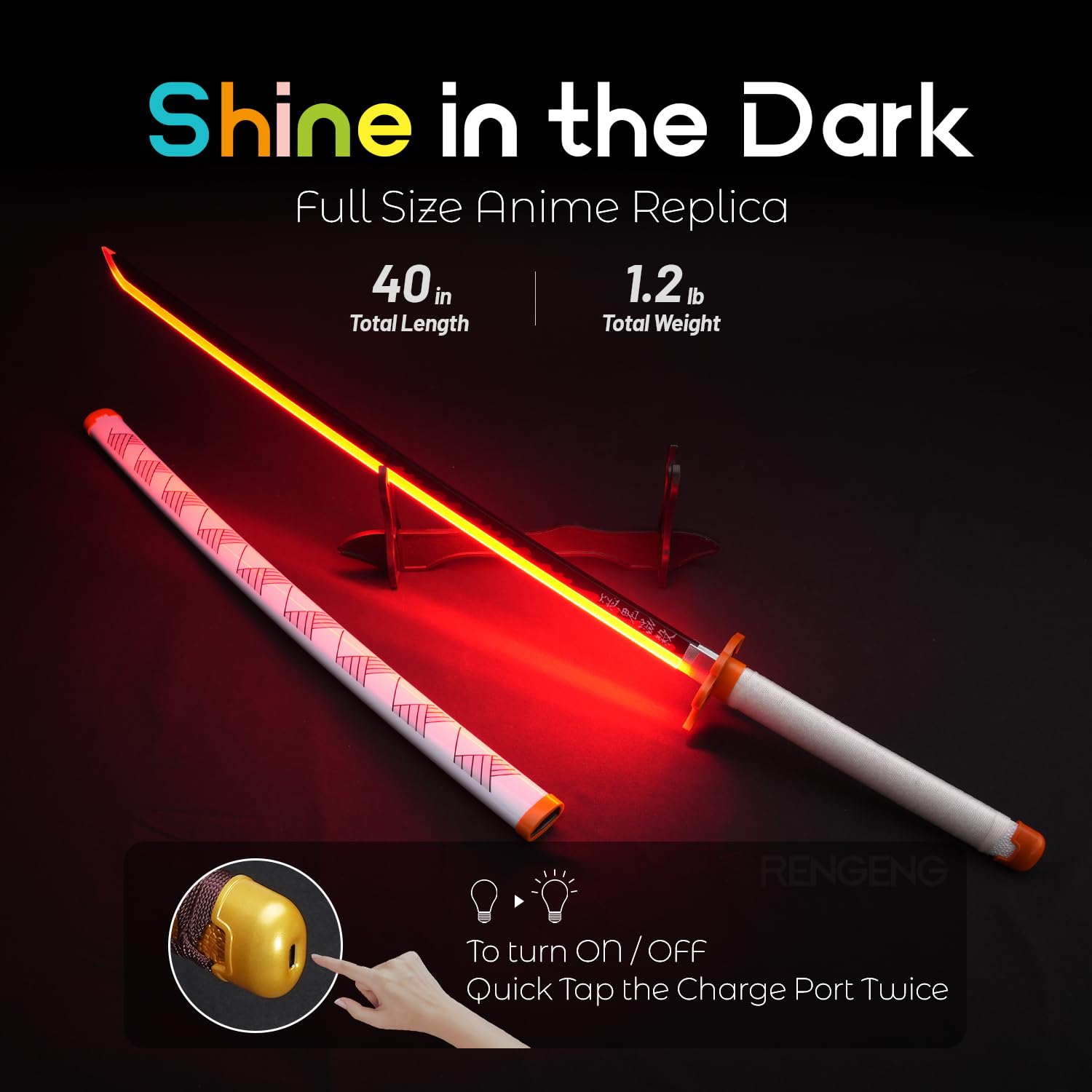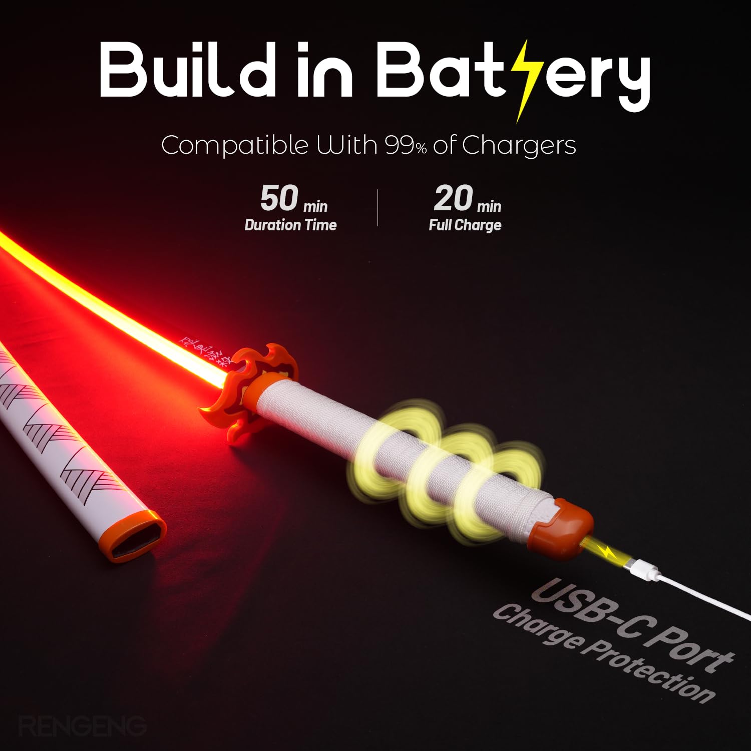 [Packaging Includes] This package contains: Light Up Sword x1, Holster Belt x1, Sword Stand x1, Sword Spinner x1, and USB-C Cable x1
