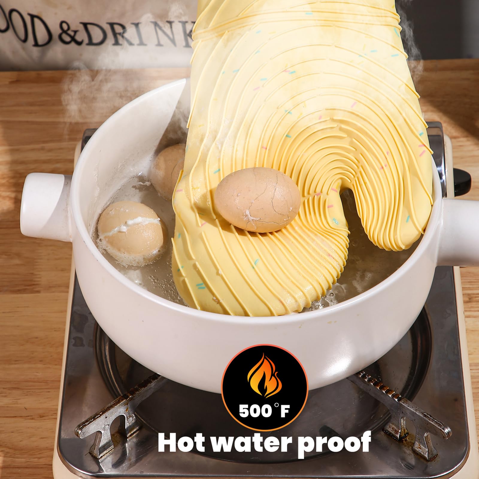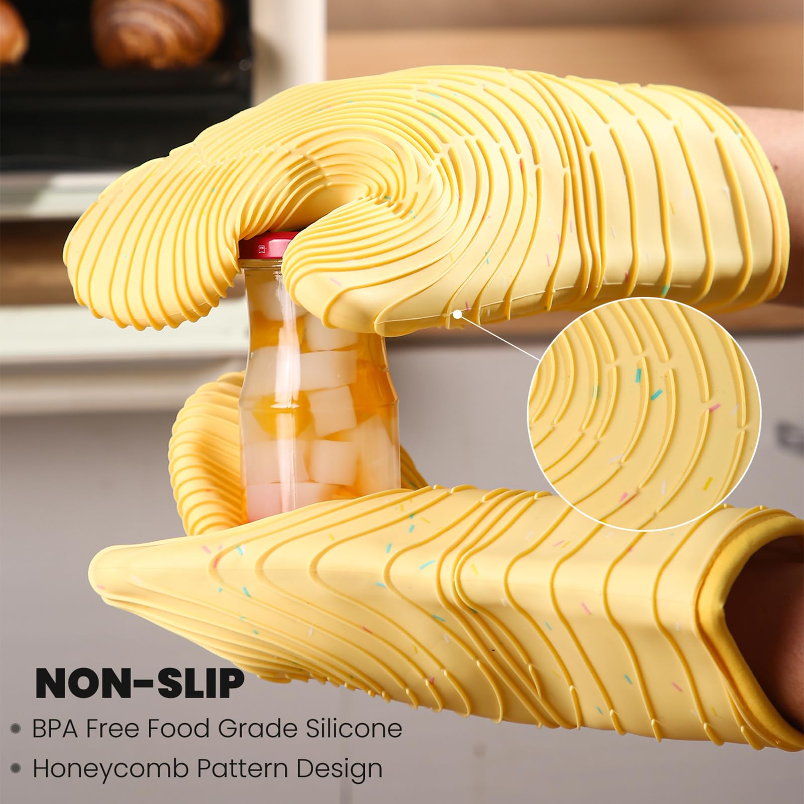 Anti-slip Design: Designed with anti-slip textures, offering a secure grip to prevent slipping on wet surfaces, ensuring safety during kitchen operations, especially when using the silicone oven gloves.