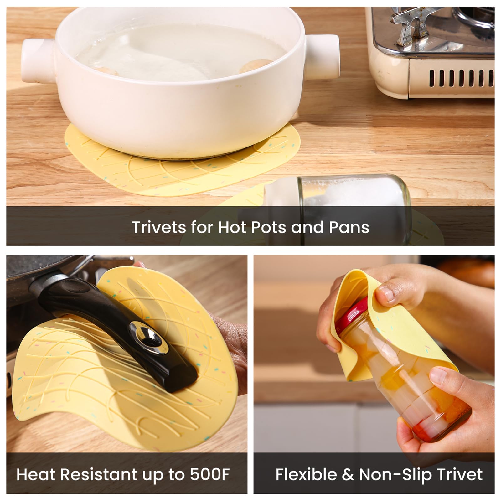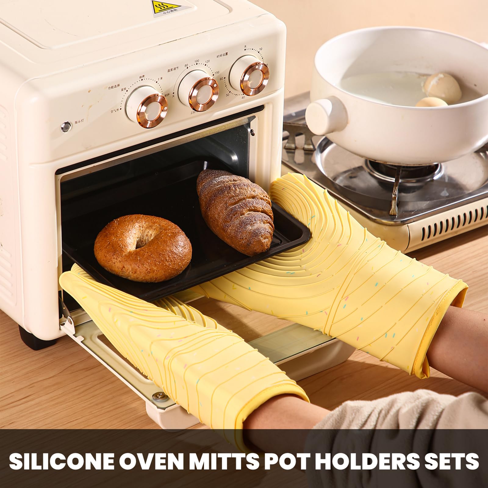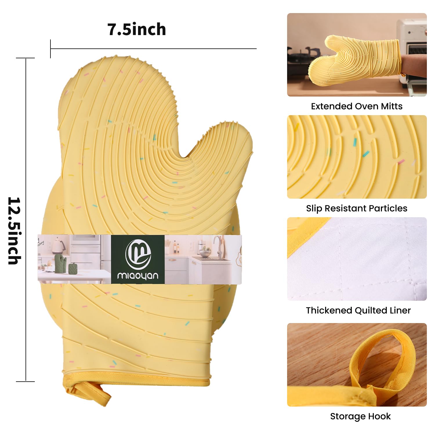 Versatile Four-Piece Set of Silicone Oven Gloves and Mats: Each set includes two 12.5-inch silicone oven gloves and two 7.8-inch silicone mats, showcasing M Miaoyan's dedication to innovative kitchen product designs.