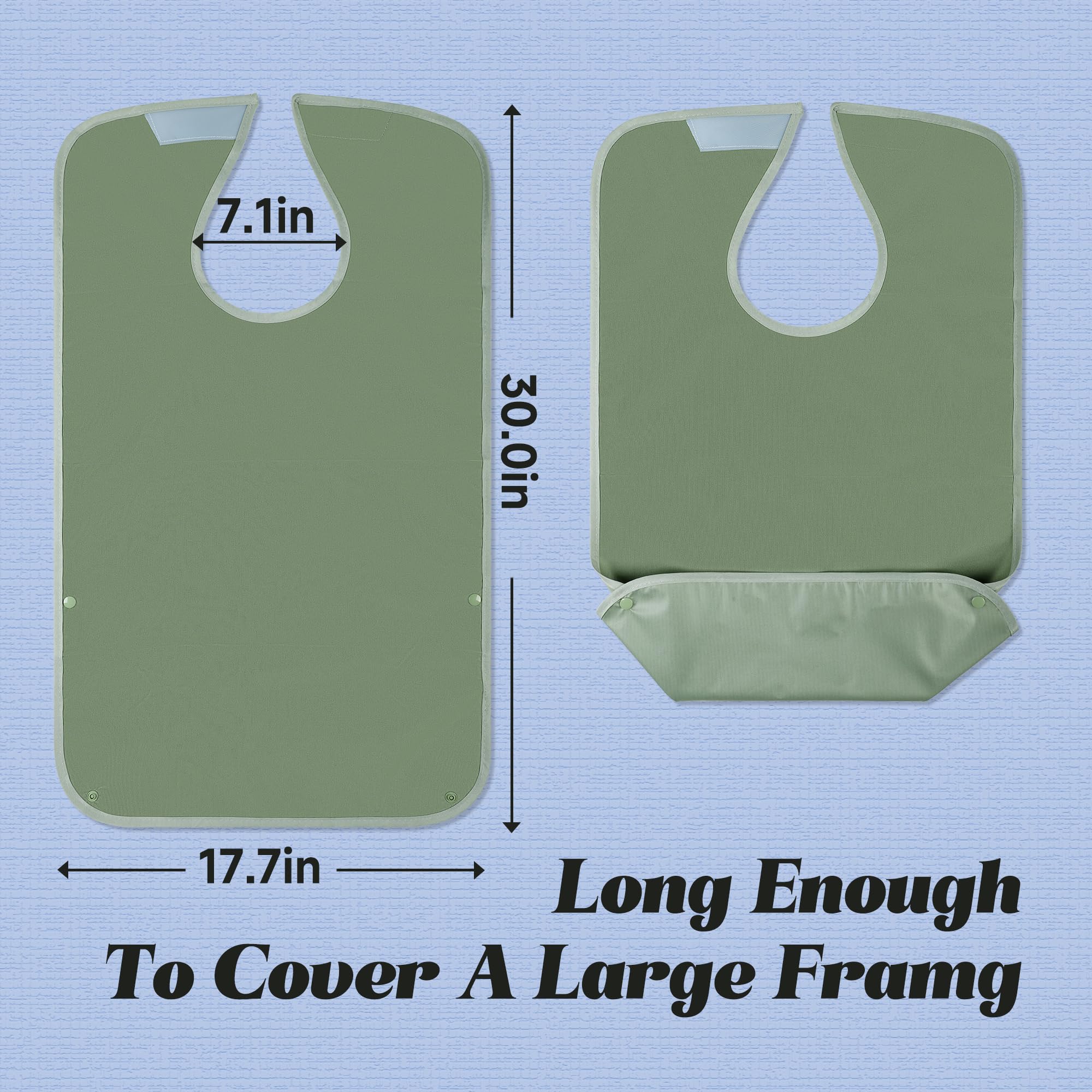 High-Quality Lining: Bibs for men adults with waterproof lining isolate liquids and hot drinks to prevent burns. It catch spills and drool at mealtimes, keeping your clothes clean and dry, free of stains, while maintaining an attractive appearance