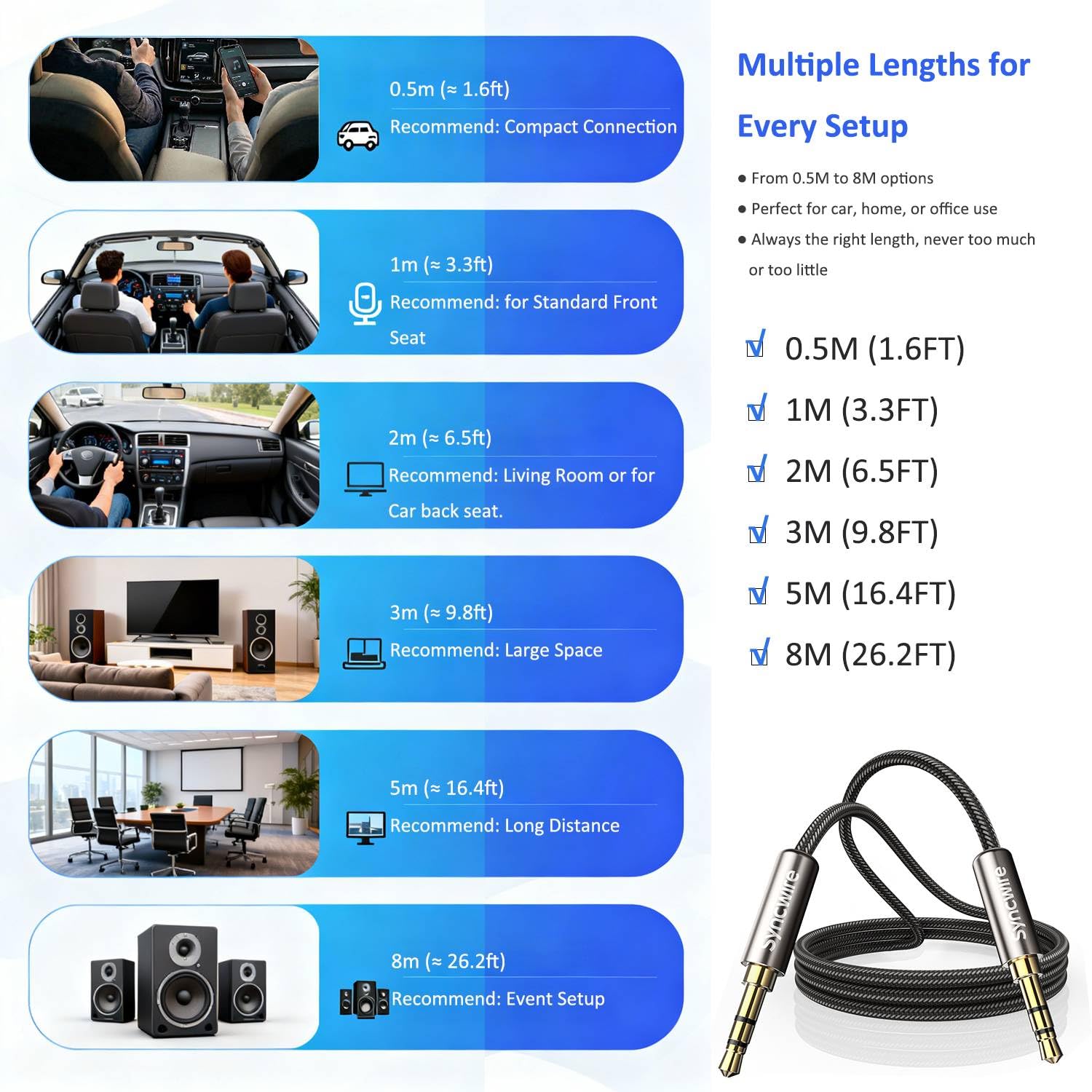 Ultra Durable And Tangle-Free: With an 15000+ ultra-durable bend lifespan several times longer than original audio cables. You can wind it without having to worry about knots or kinks.