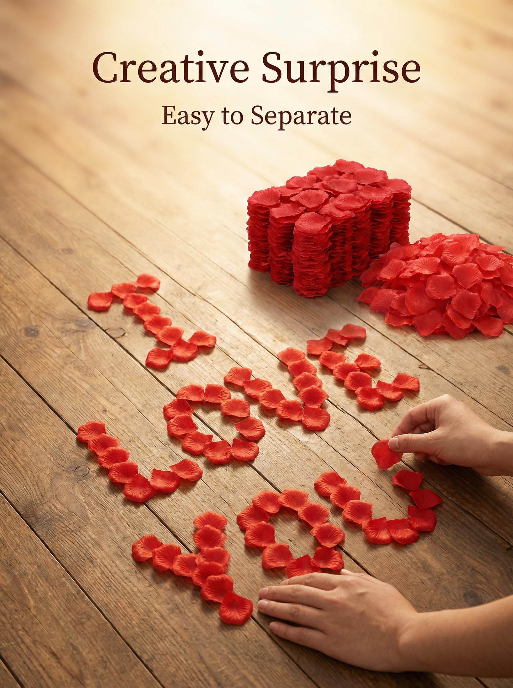 🌹【Create a Romantic Atmosphere】🌹These perfect artificial petals are ideal for scattering on occasions like Valentine's Day, weddings, romantic dates, proposals, table decorations, aisle runner scatters, and any event where you want to emphasize romantic love. They are the go-to choice for rose petal decorations at parties, wedding anniversary celebrations, romantic nights, and various banquet occasions.