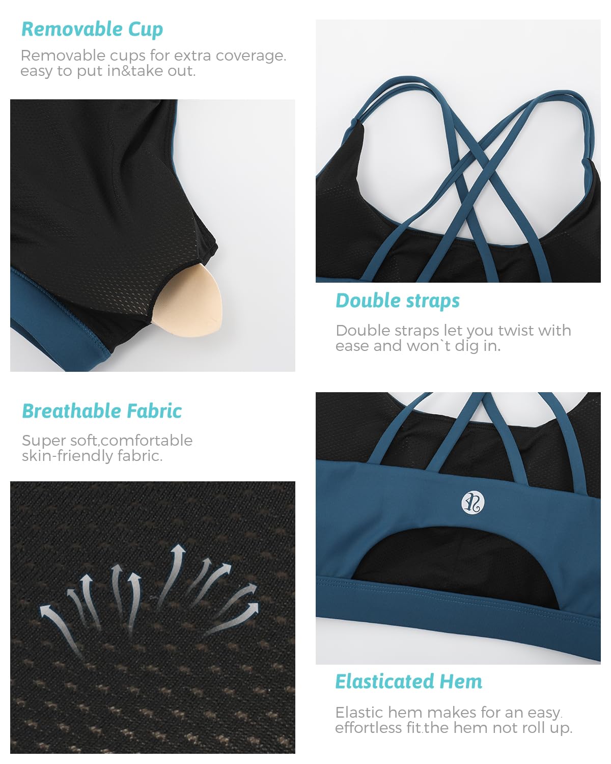√YOUR SECURE FIT - Strappy design meets sporty style. Super soft scoop neckline with light, removable pads. Open cutout back styling sports bras for women medium support, widen band underneath the breast ensures a tight secure fit. Removable cups for extra coverage. The removable vertical cotton bra pads are easy to clean.The padded sports bra which always retains its shape and prevent bra bulges, caresses your figure to adjust to your curves.