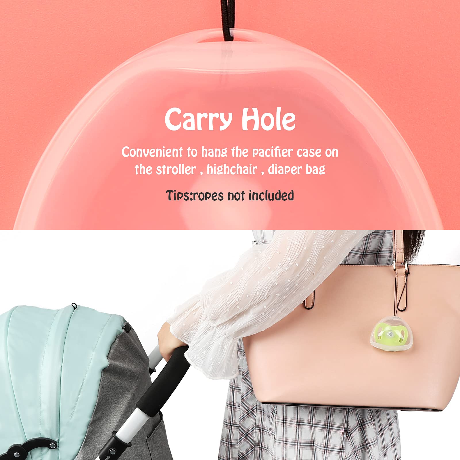Stores an extra pacifier safe and keep it clean.
