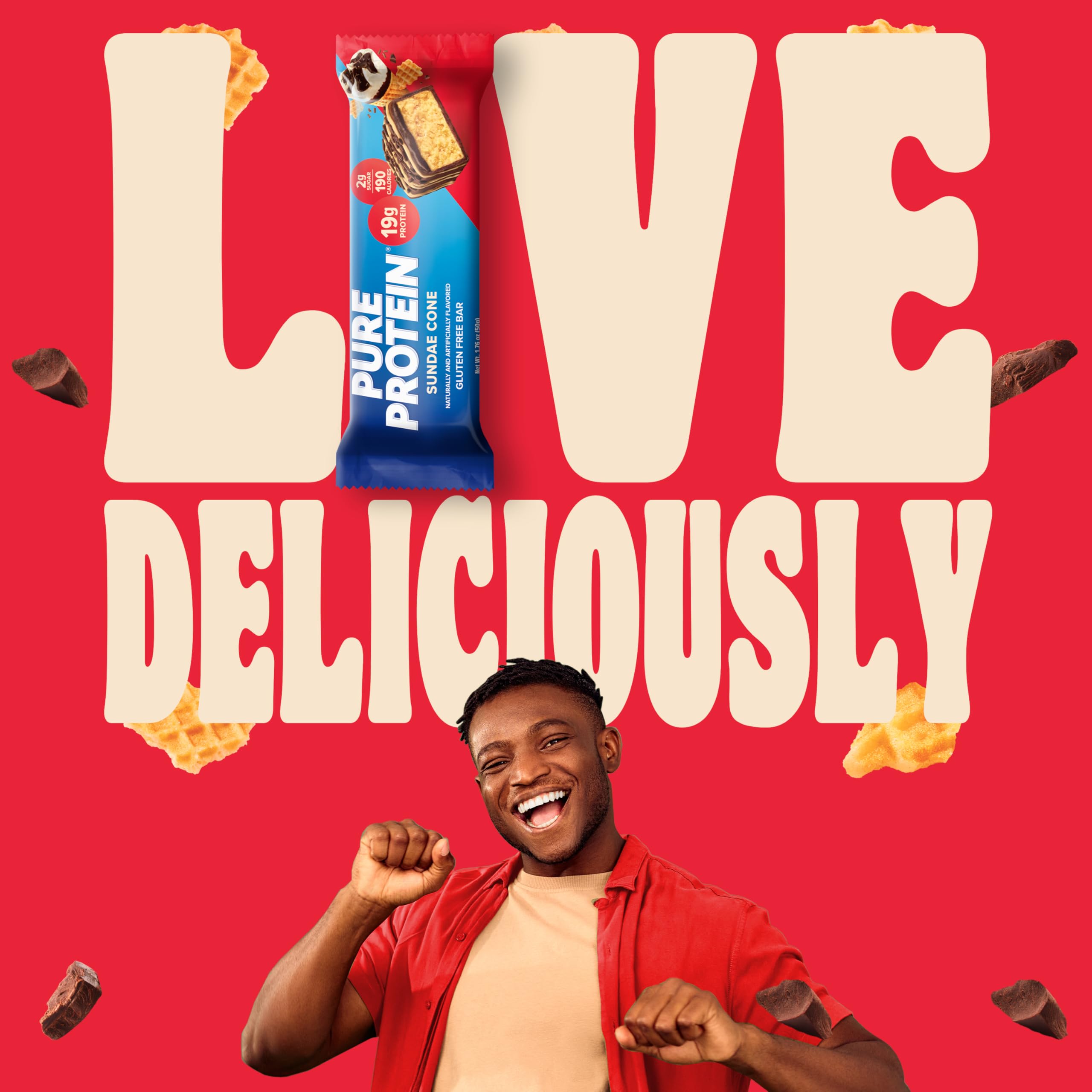 DELICIOUS HIGH PROTEIN BAR: Pure Protein Sundae Cone Protein Bars are full of flavor and contain 19g of protein for lasting energy. Each delicious bar is gluten free with high-quality protein that helps build lean muscle and strength.