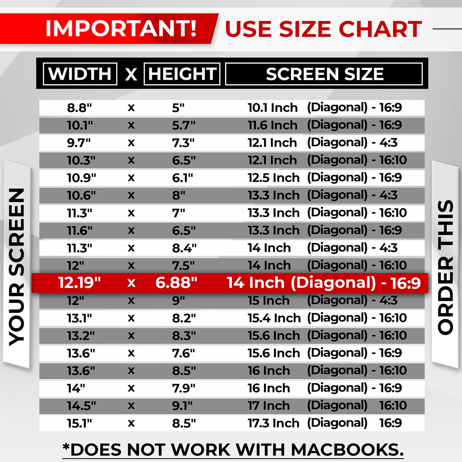 【Filter Dimensions】: Width: 12 3/16" (310 mm), Height: 6 7/8" (175 mm), Diagonal: 14" (355.6 mm) - SightPro Blackout Privacy Filter is engineered to be compatible with Lenovo, HP, Dell, Acer, Asus, Samsung, and other laptop brands. Please verify your screen's width and height measurements before ordering. It's not recommended to make your selection based solely on your screen's diagonal size. [Not optimized for touchscreens.]