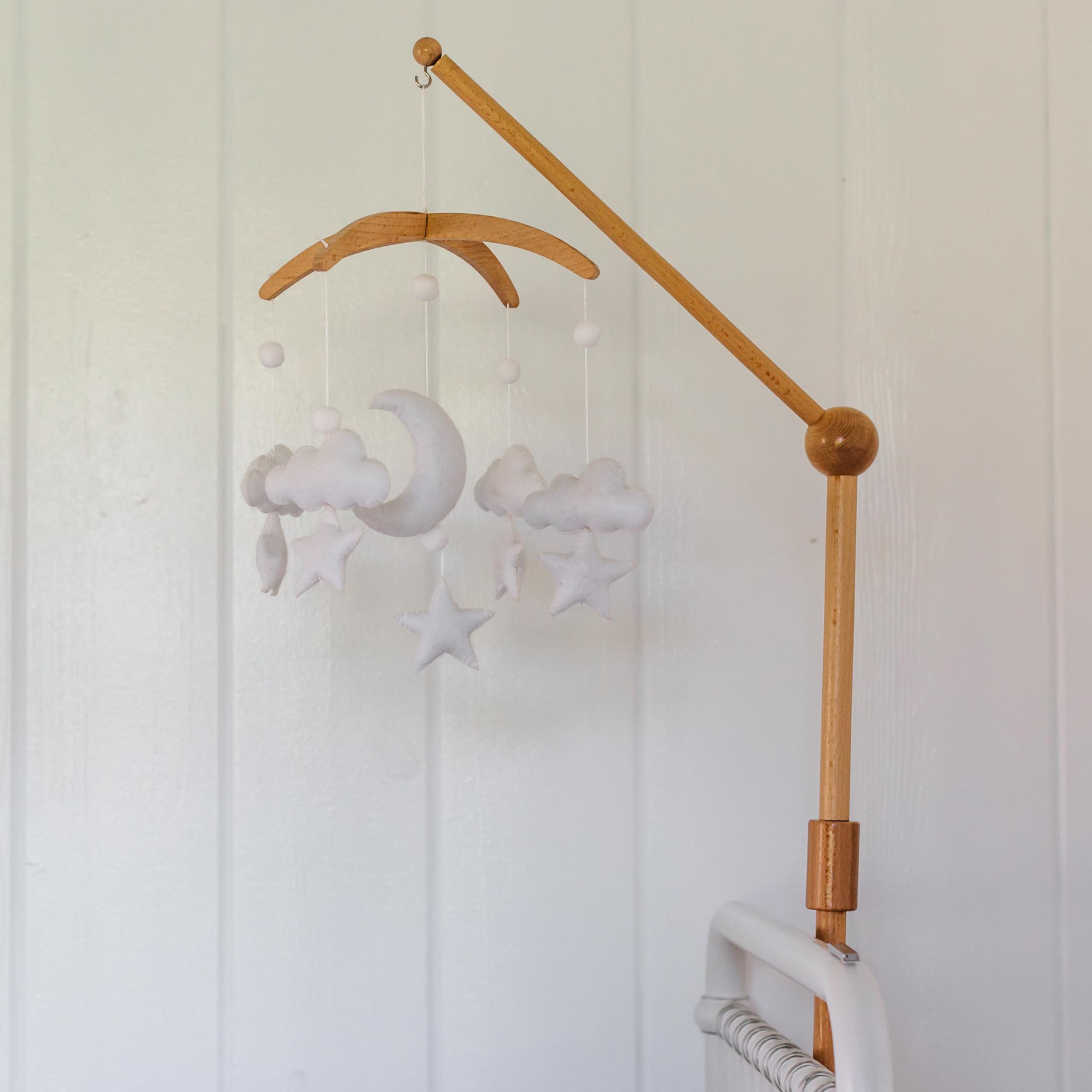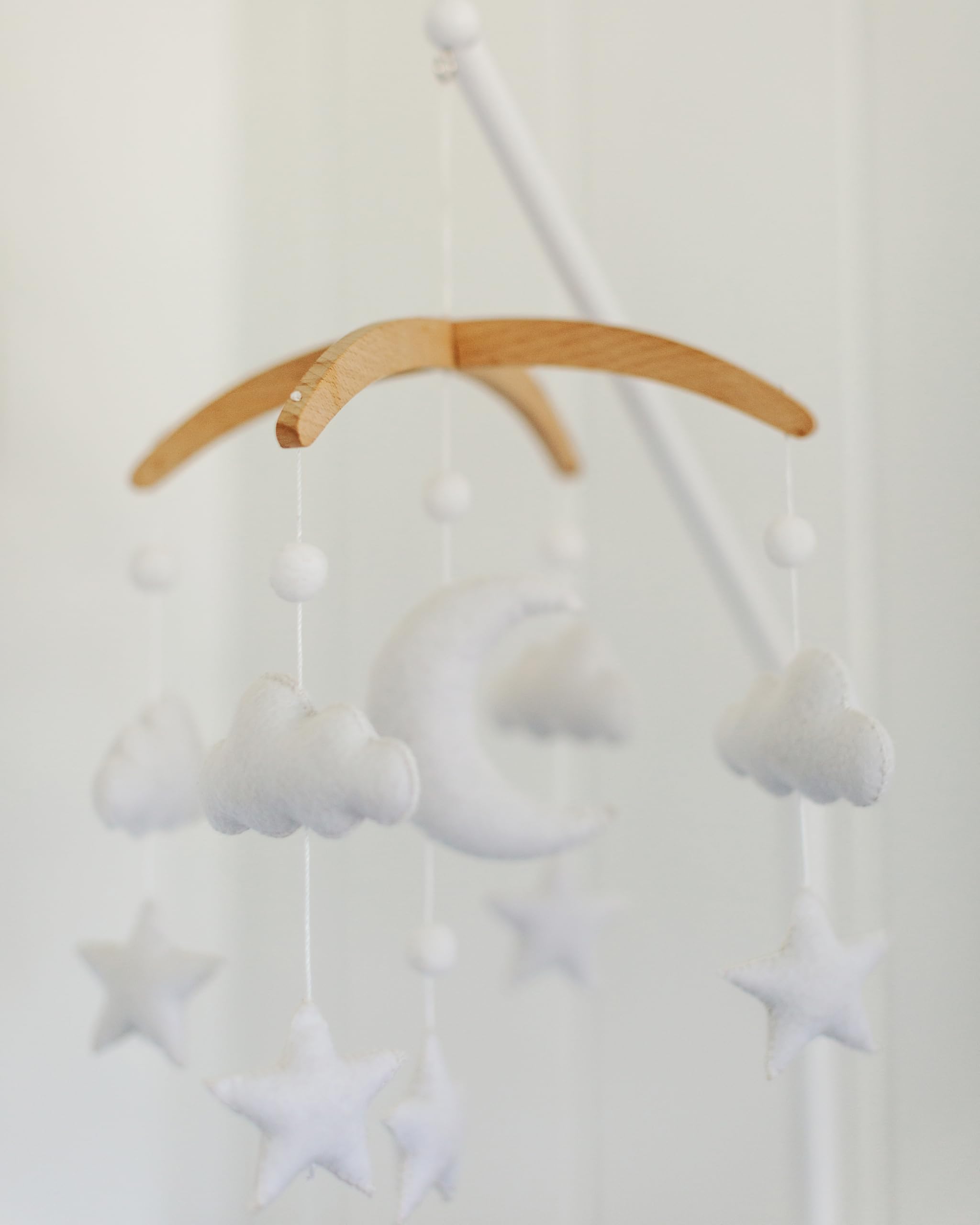 ☁️ SIMPLE & MODERN - Crafted with a 3-D design, this felt and wood mobile captures attention from both adults and babies. It's an excellent choice for a baby shower, birthday, or registry.