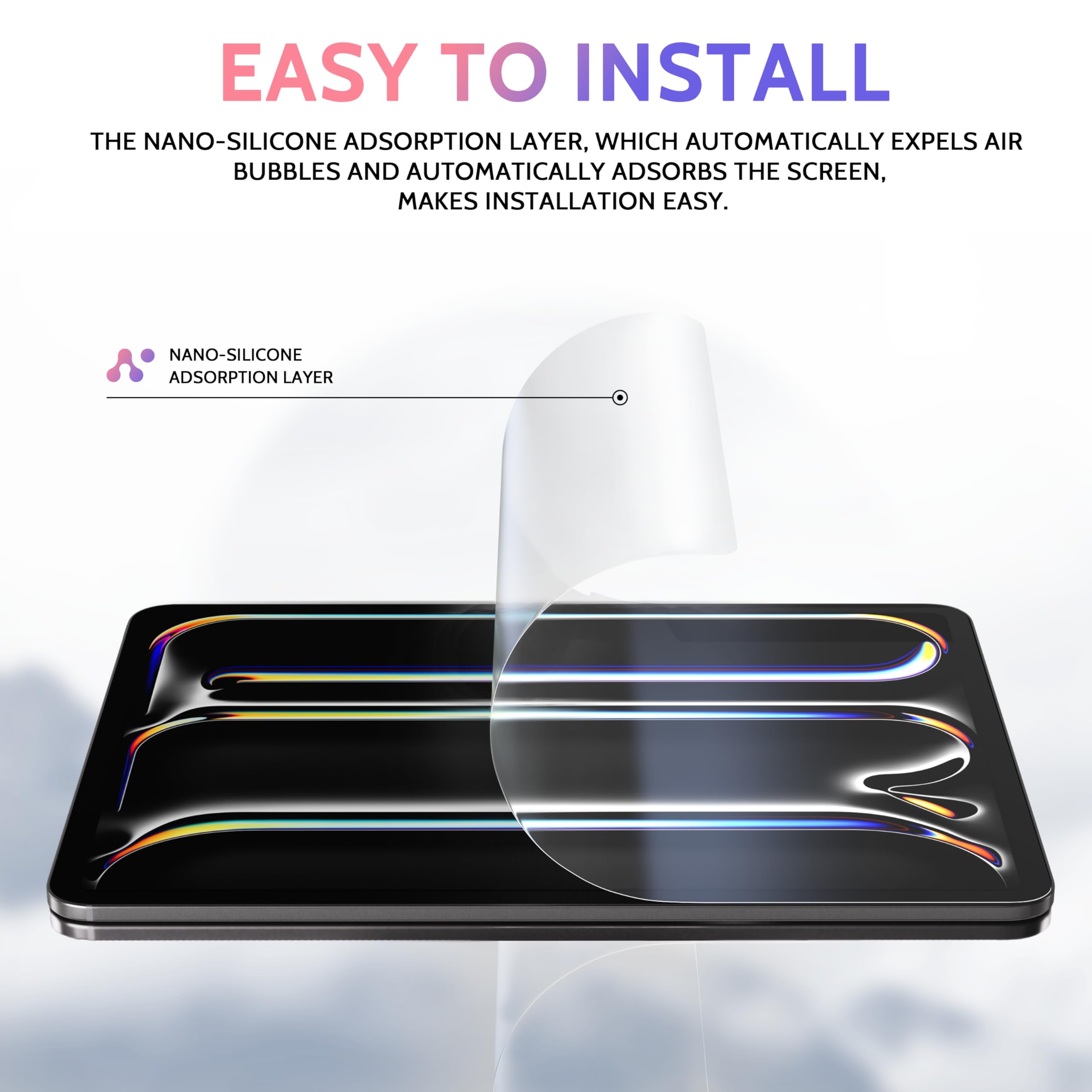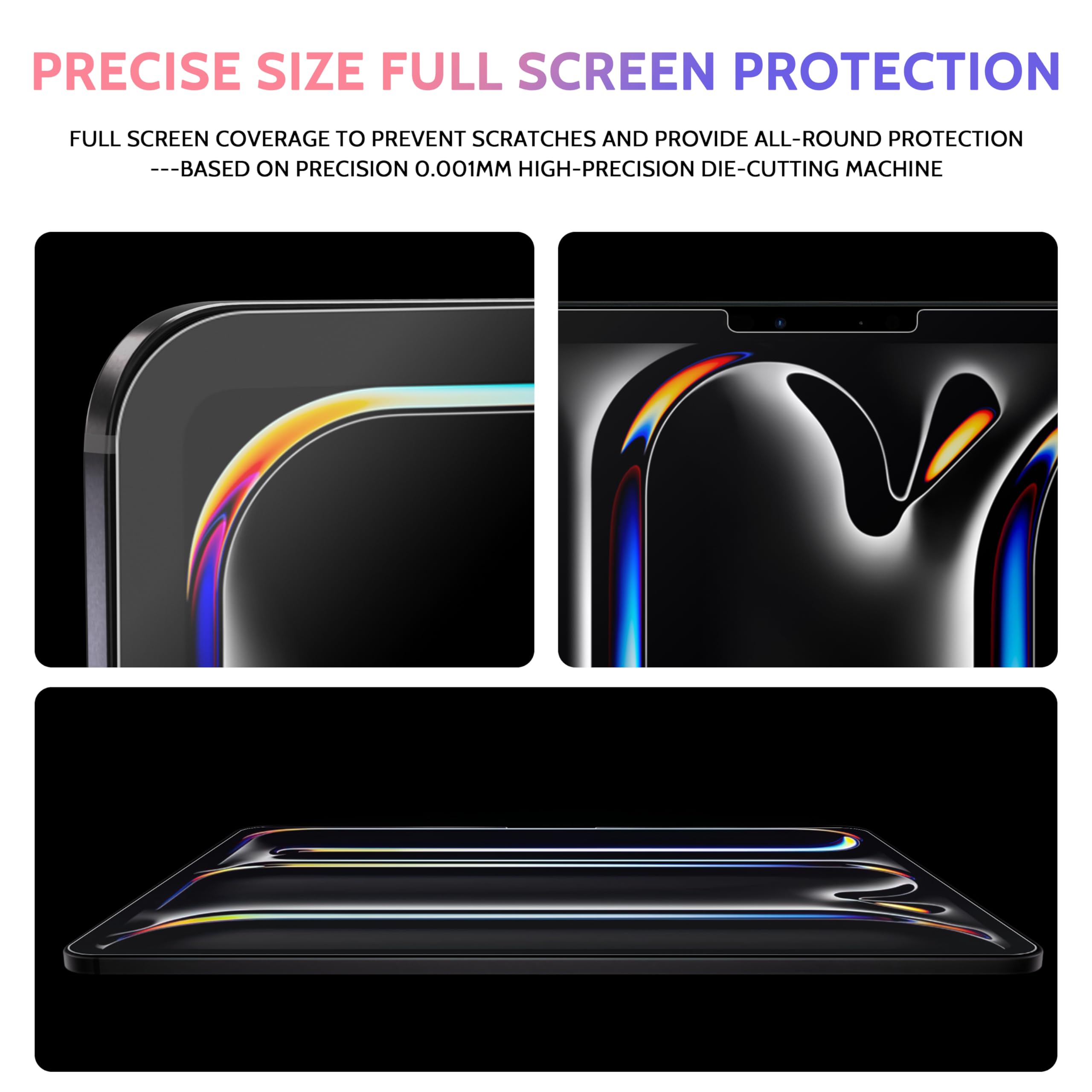 【Precise and Durable】A die-cutting machine with a precision of 0.01mm produced in Germany is used to ensure that each piece of ipad air 13 inch m2 screen protector can be perfectly matched and that the iPad is fully protected to avoid scratches. The exclusive developed automatic repair process can automatically restore within 24 hours to ensure that the feel paper like new and make the protective film durable. What we get is a like-paper film that is fully protected and always looks like new.
