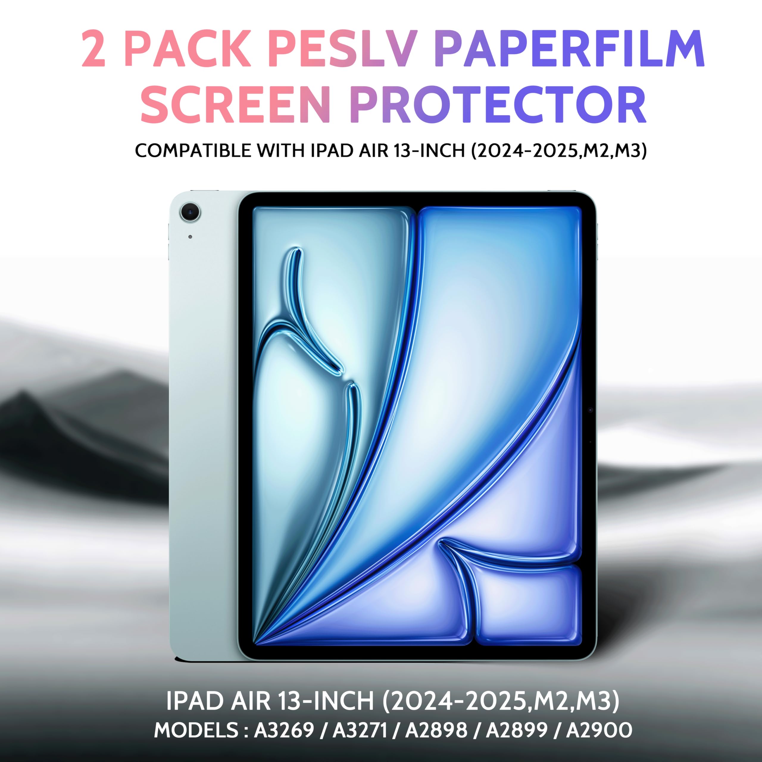 【Compatibility & Application】Only compatible with Apple iPad Air 6th/7th generation 13 inch Released in 2024-2025. Fit Models: A3268, A3269, A2898, A2899 . Please check the model number on the back bottom of your iPad.Use Peslv like-paper screen protector ipad air 13 inch to replace the paper you use for drawing, writing or taking notes, accelerate the world's transition to paperless, and contribute to the protection of the earth!