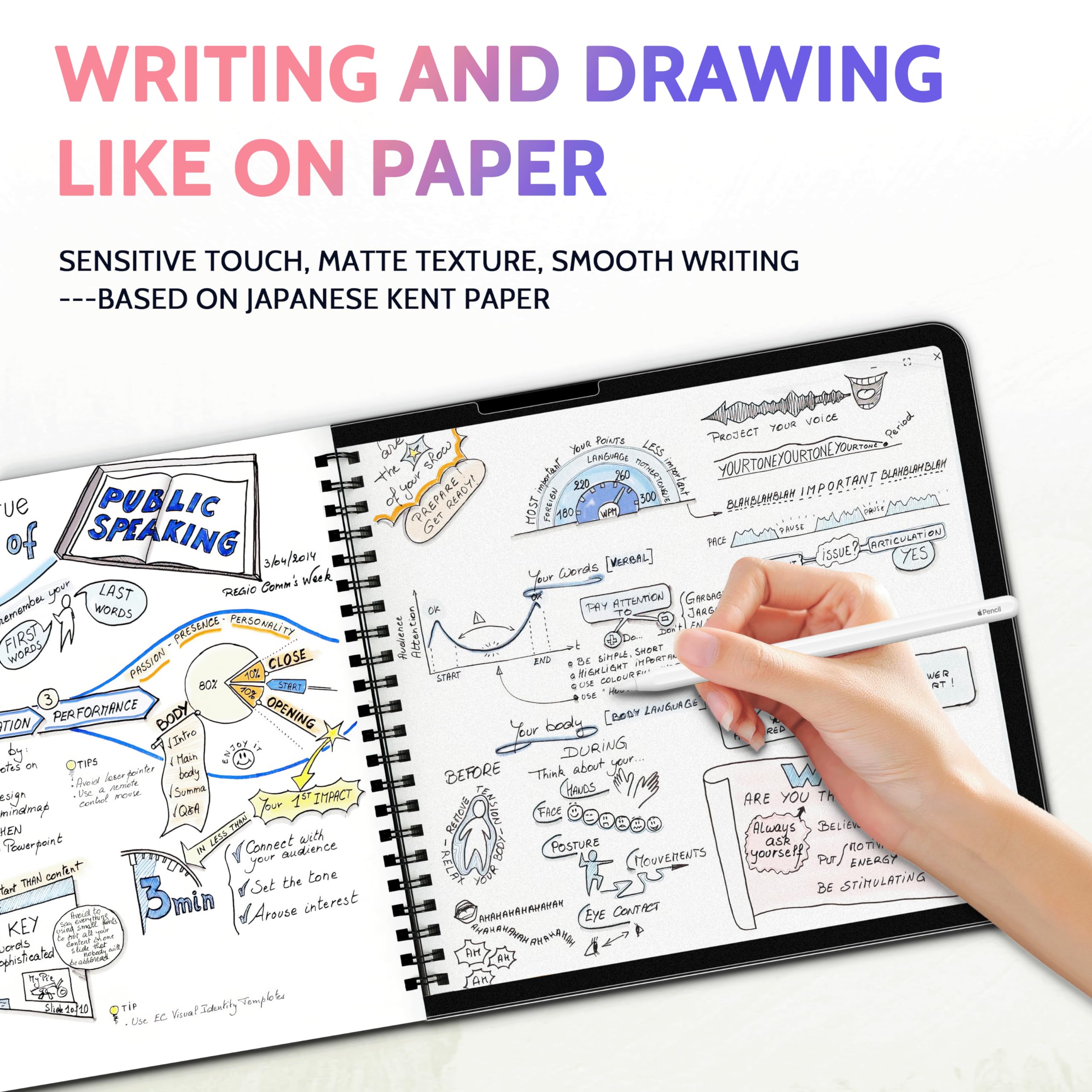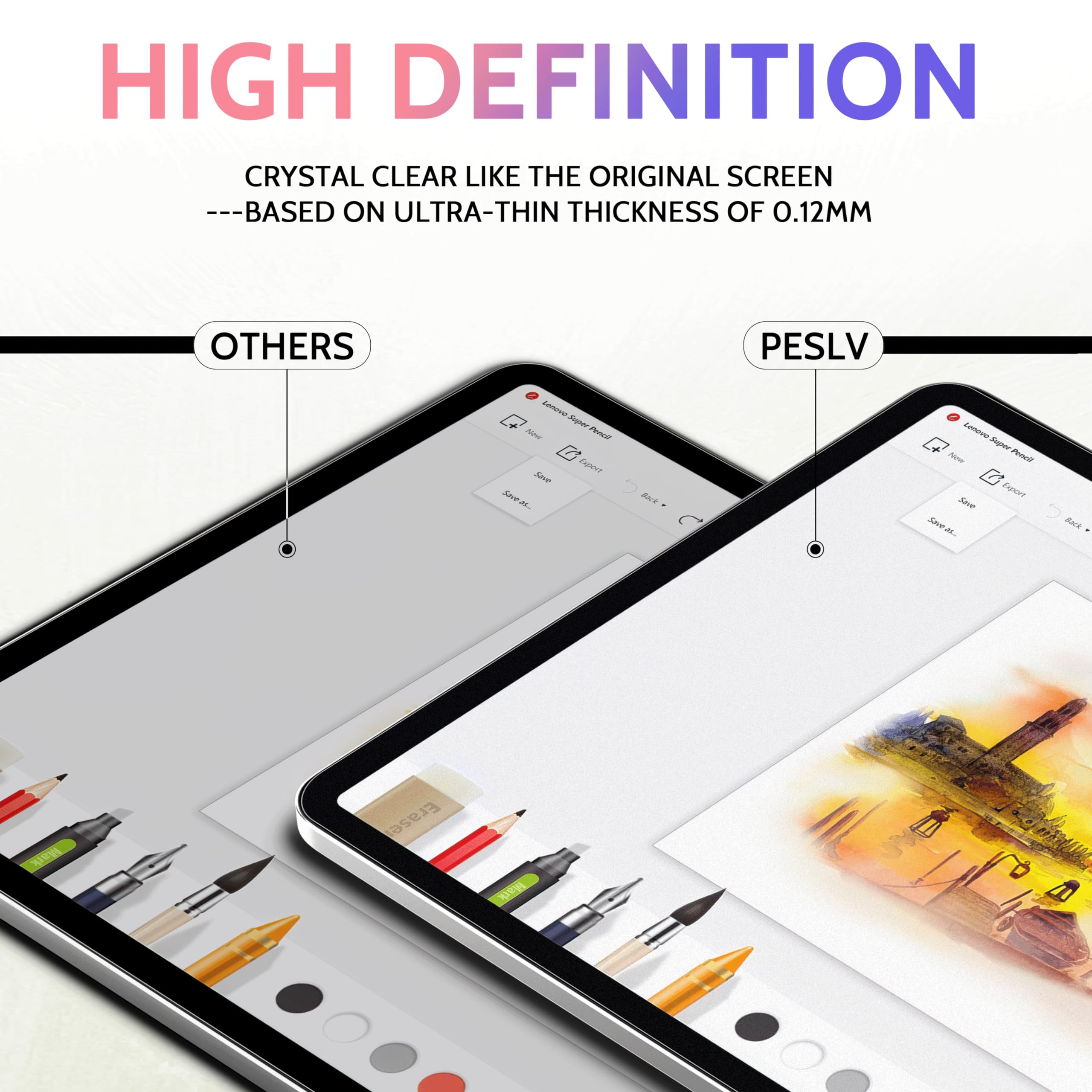 【Feel Like On Paper】Peslv ipad air 13 inch screen protector, using the Kent paper film technology imported from Japan, improves the feel like to paper 99%, Effectively reduce wear on the pen tip. Using it with the ipad pencil, we can get the same smooth, sensitive iPad screen creation experience as drawing on paper!