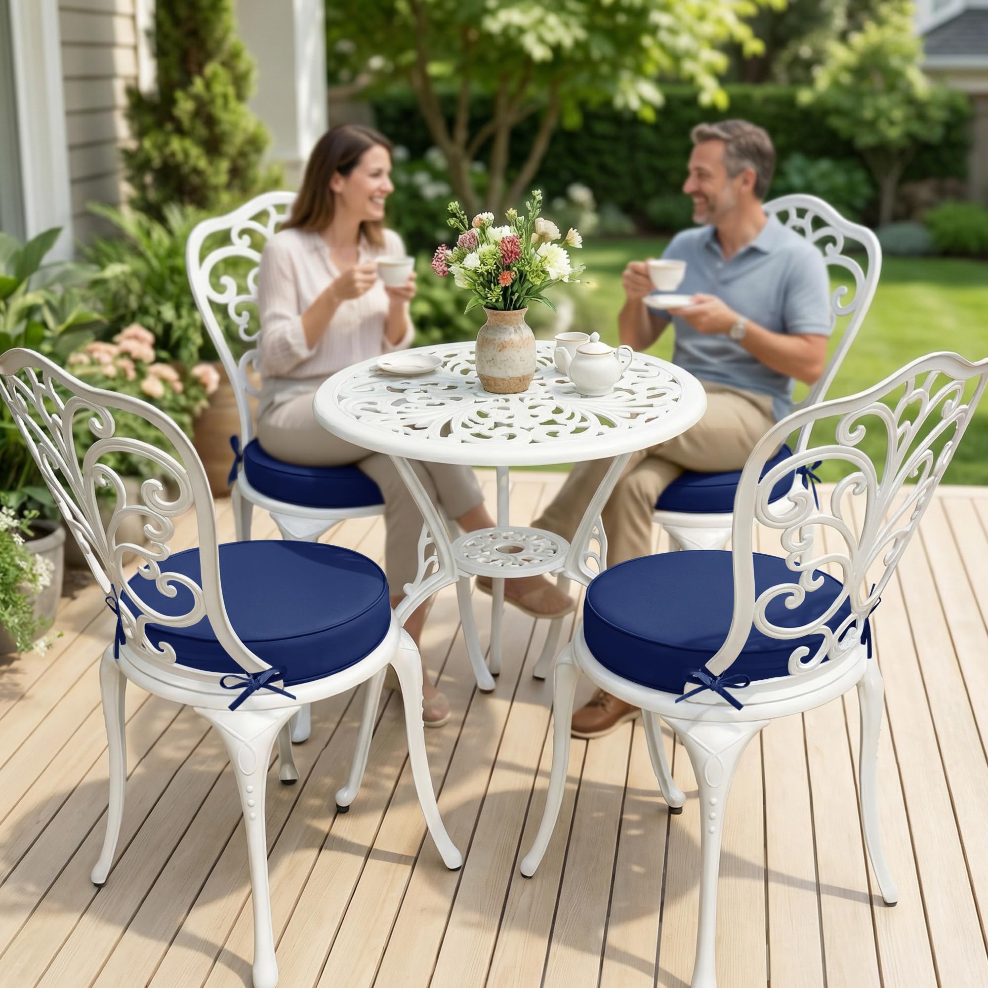 Waterproof & Fade-Resistant: Crafted from high-quality 250gsm polyester fabric, these premium bistro chair cushions are built to withstand the elements. The weather-resistant fabric repels moisture, keeping your outdoor seat cushions dry and protected from rain, while anti-fading technology preserves their vibrant colors even after prolonged sun exposure.
