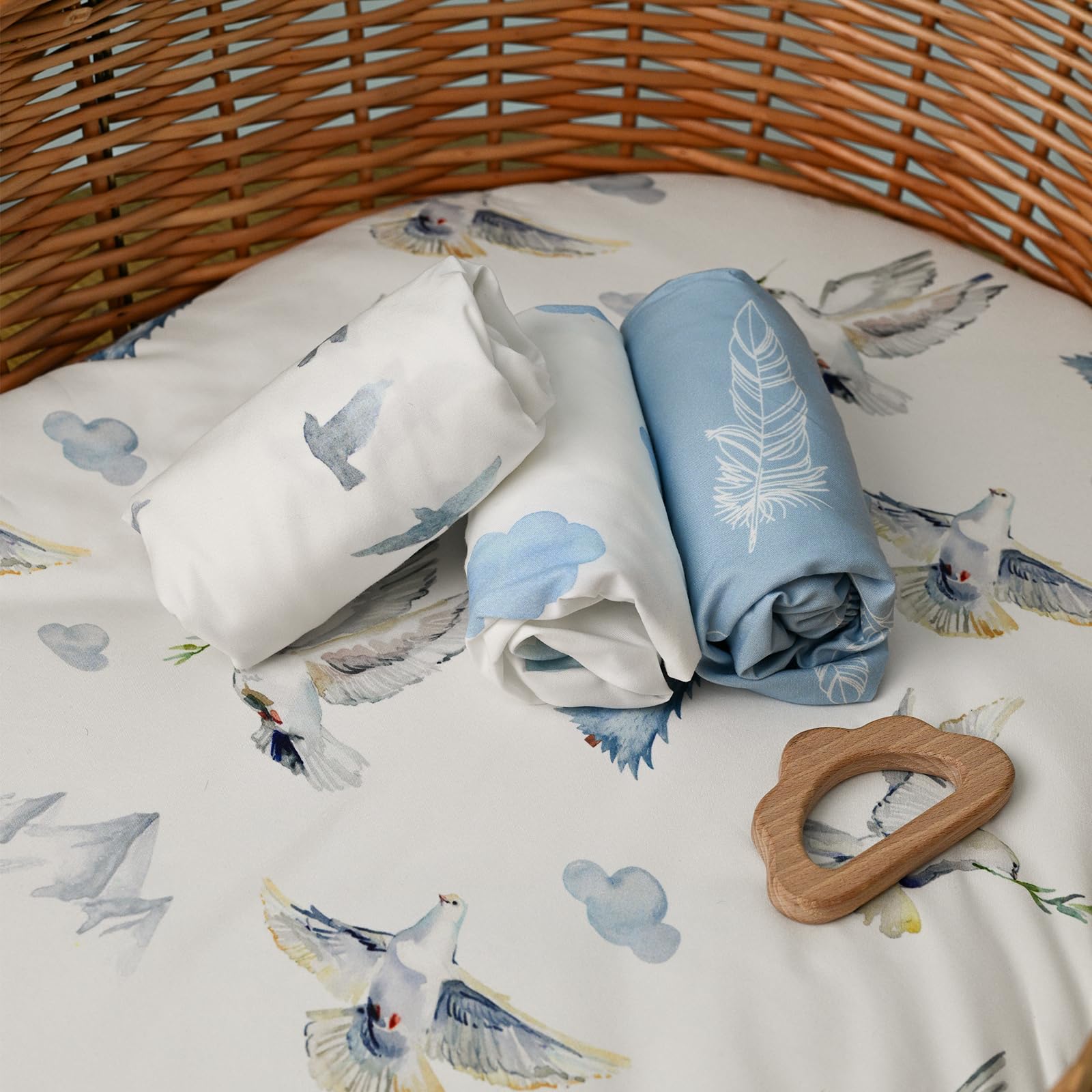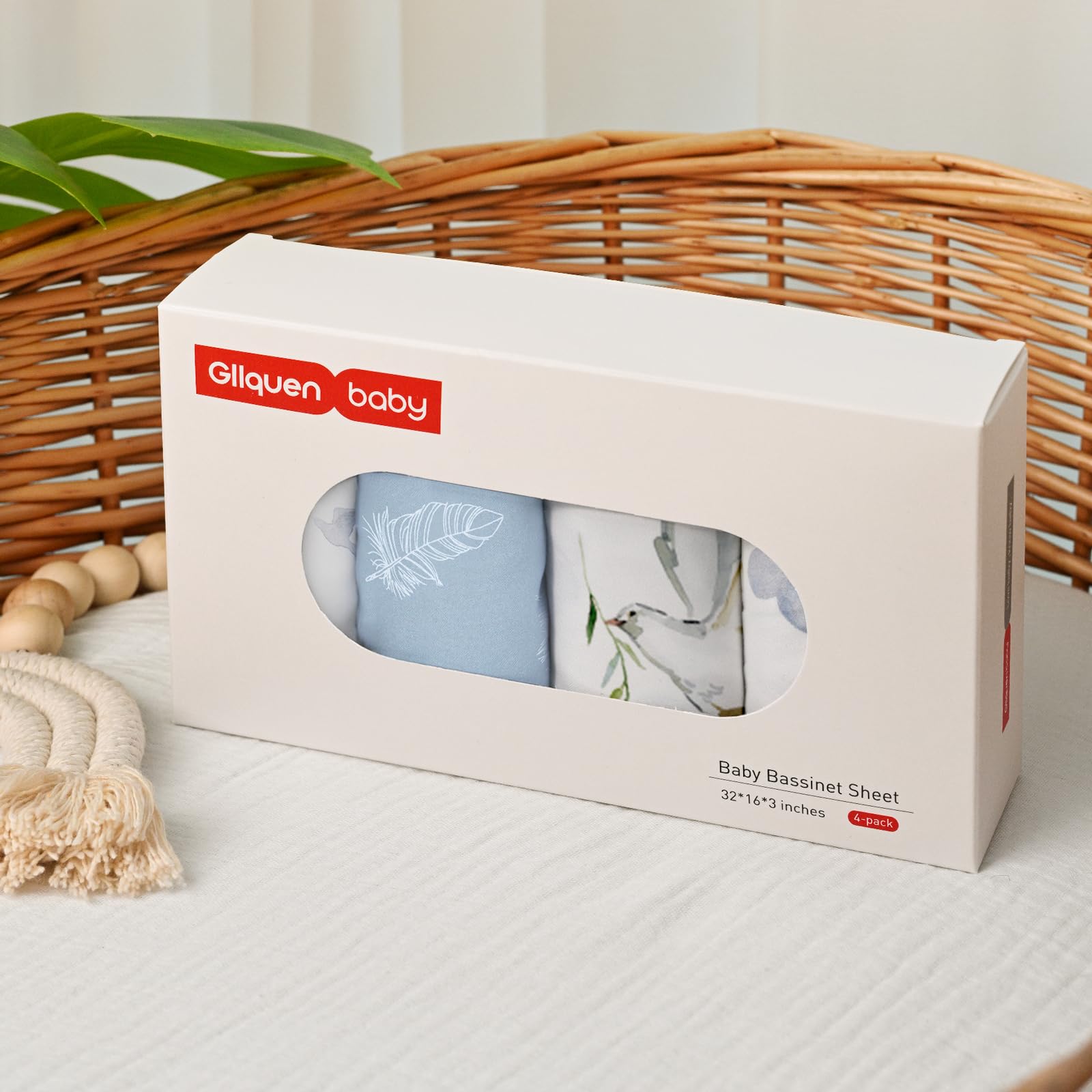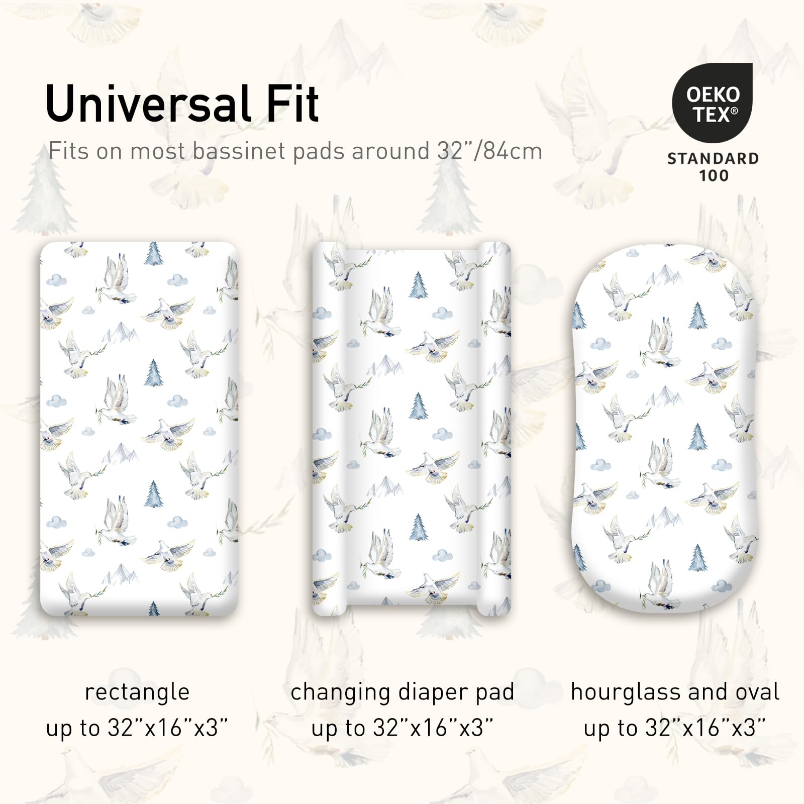 SUPER SOFT FABRIC: Our baby bedding bassinet sheets are made of soft and breathable fabric that best fits the standard bassinet crib. The elastic band surrounds the mattress, so mothers will not worry that it will slip away, creating a comfortable and stable sleeping space for the baby. Rest assured, every product meets the OEKO-TEX Standard 100 and is safe for babies