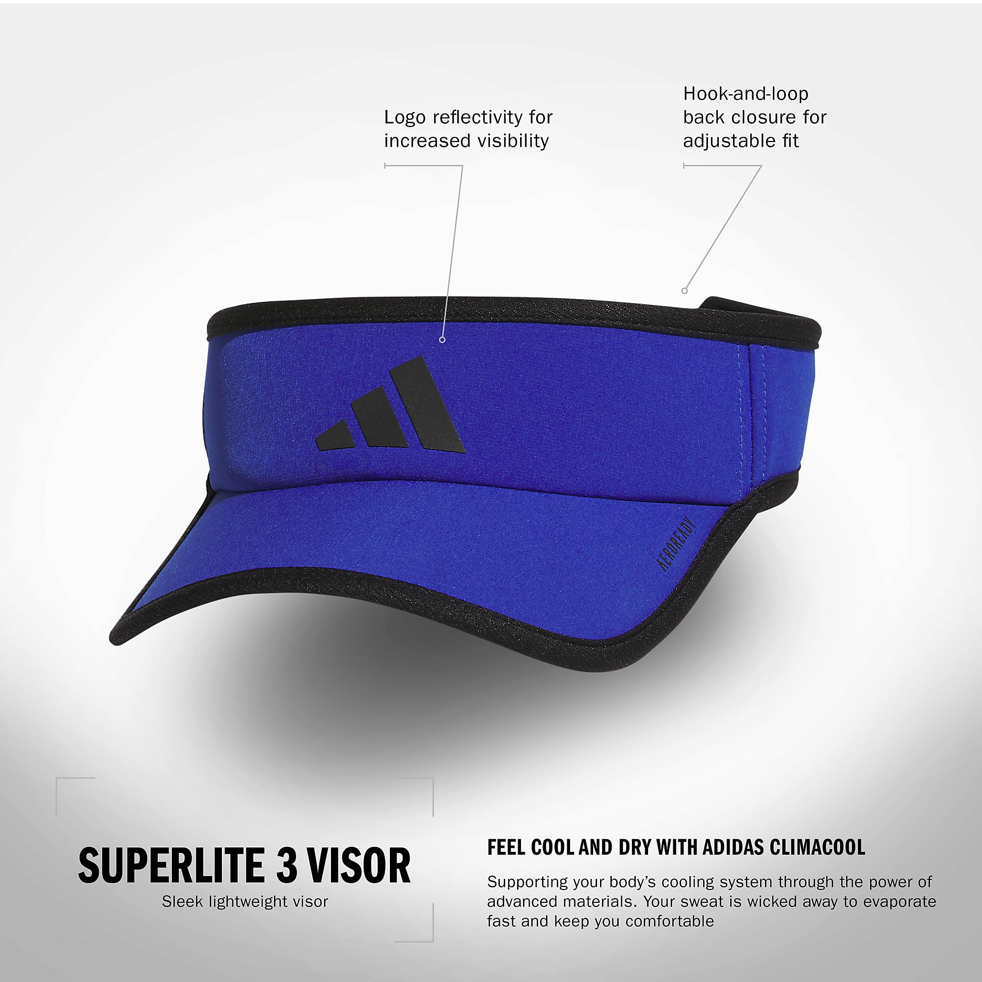 Description An ultra-lightweight option, whether you're on the tennis court or the fairway. This adidas visor is made with mesh to help you stay cool and dry. It adjusts at the back for a custom fit. This product has reflective elements for design and decoration reasons only. It is not intended or suitable for the use as Personal Protective Equipment PPE (e.g. to protect by enhanced visibility) and would not meet mandatory PPE standards