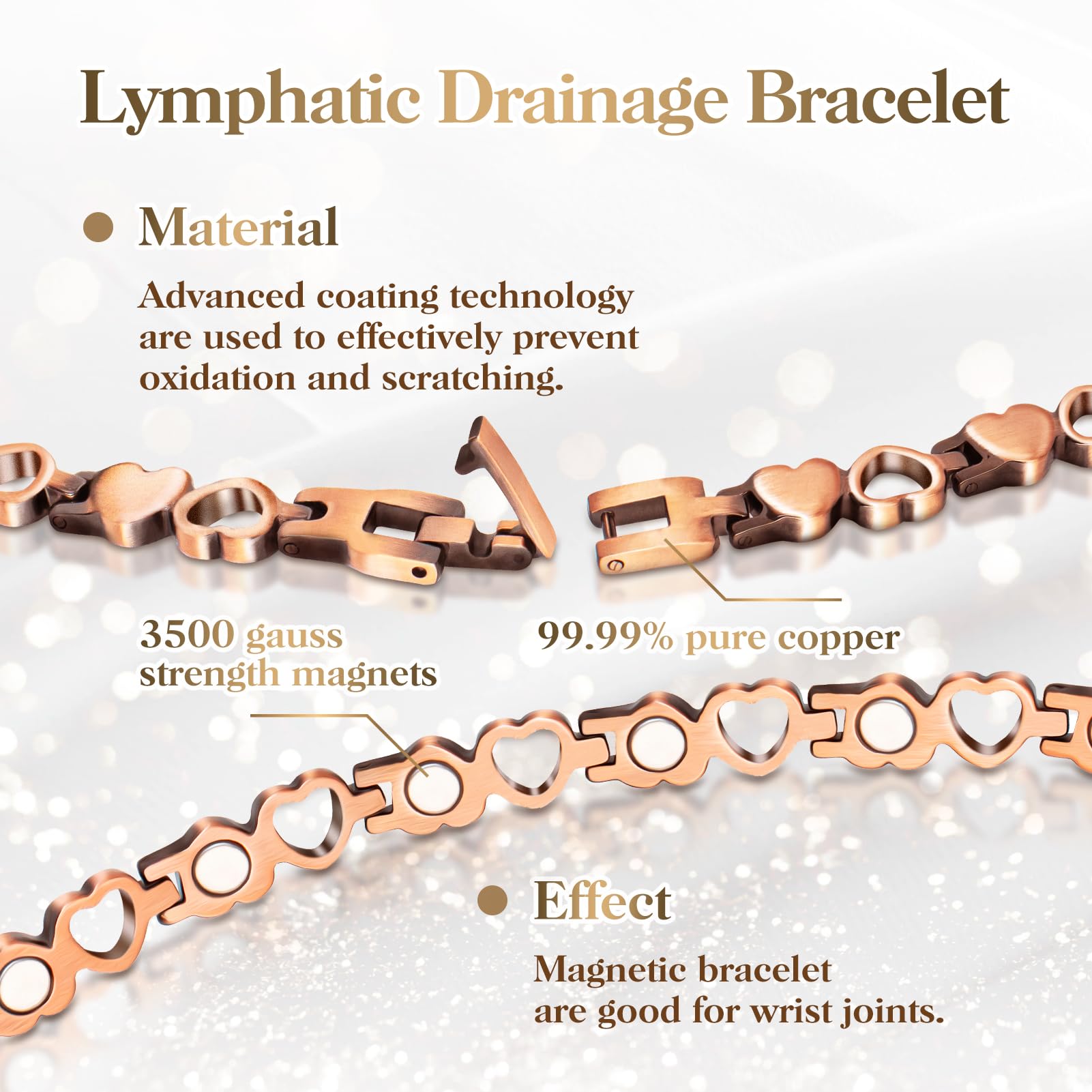 Lymph Drainage Ring & Bracelet : Each Copper bracelet embedded with 12 magnets. The magnets are believed to good for swollen wrist, hands, knuckles and thumb joints, it also provides you with good energy, balance, and better sleep.
