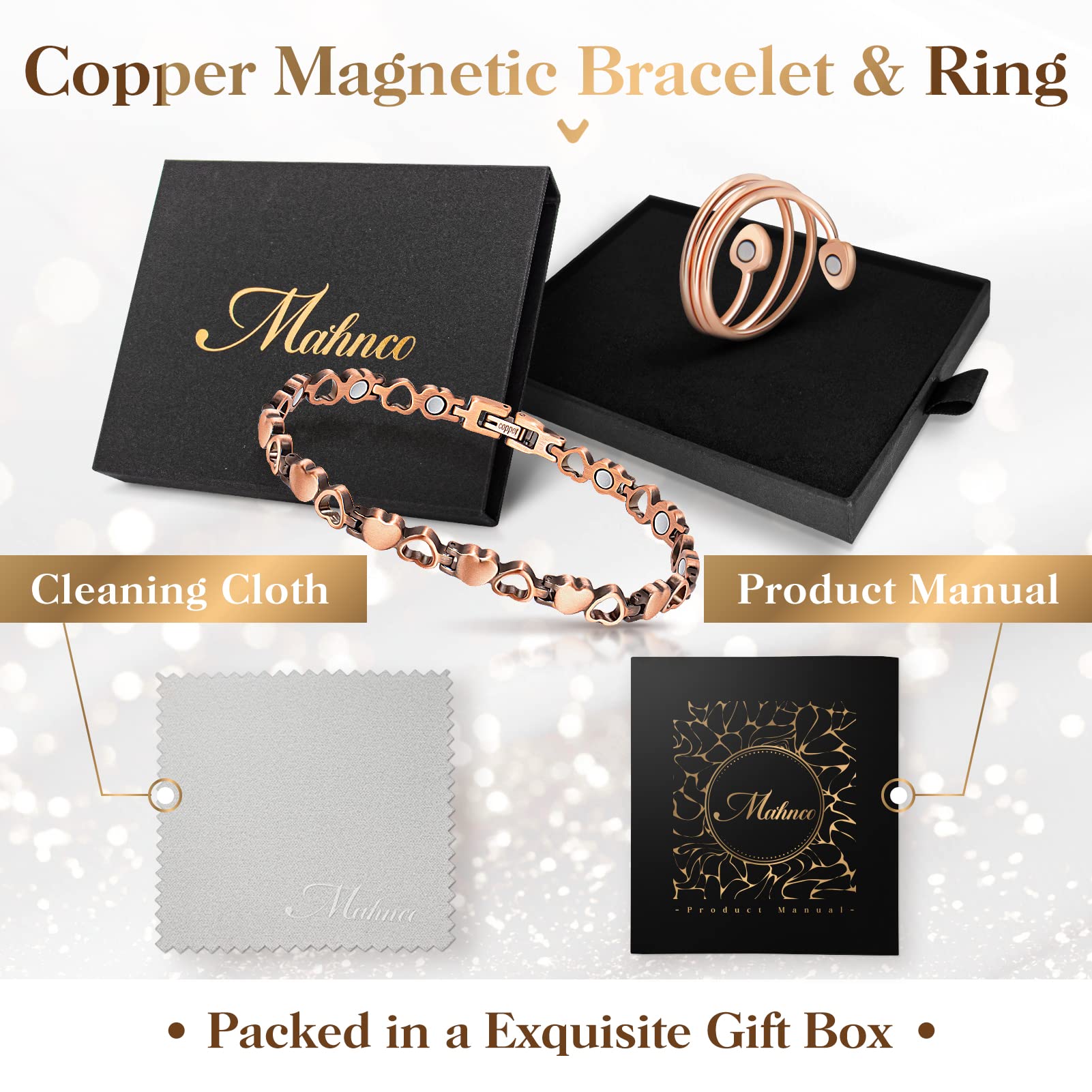 100% Pure Copper: Our ring & bracelet made of 100% pure copper with top techniques, scratches resistant, long colorfast and not easy to oxidize. 100% Hypoallergenic, lead and nickel free to provide you maximum health benefits.