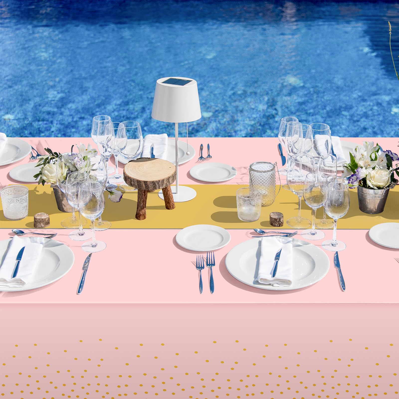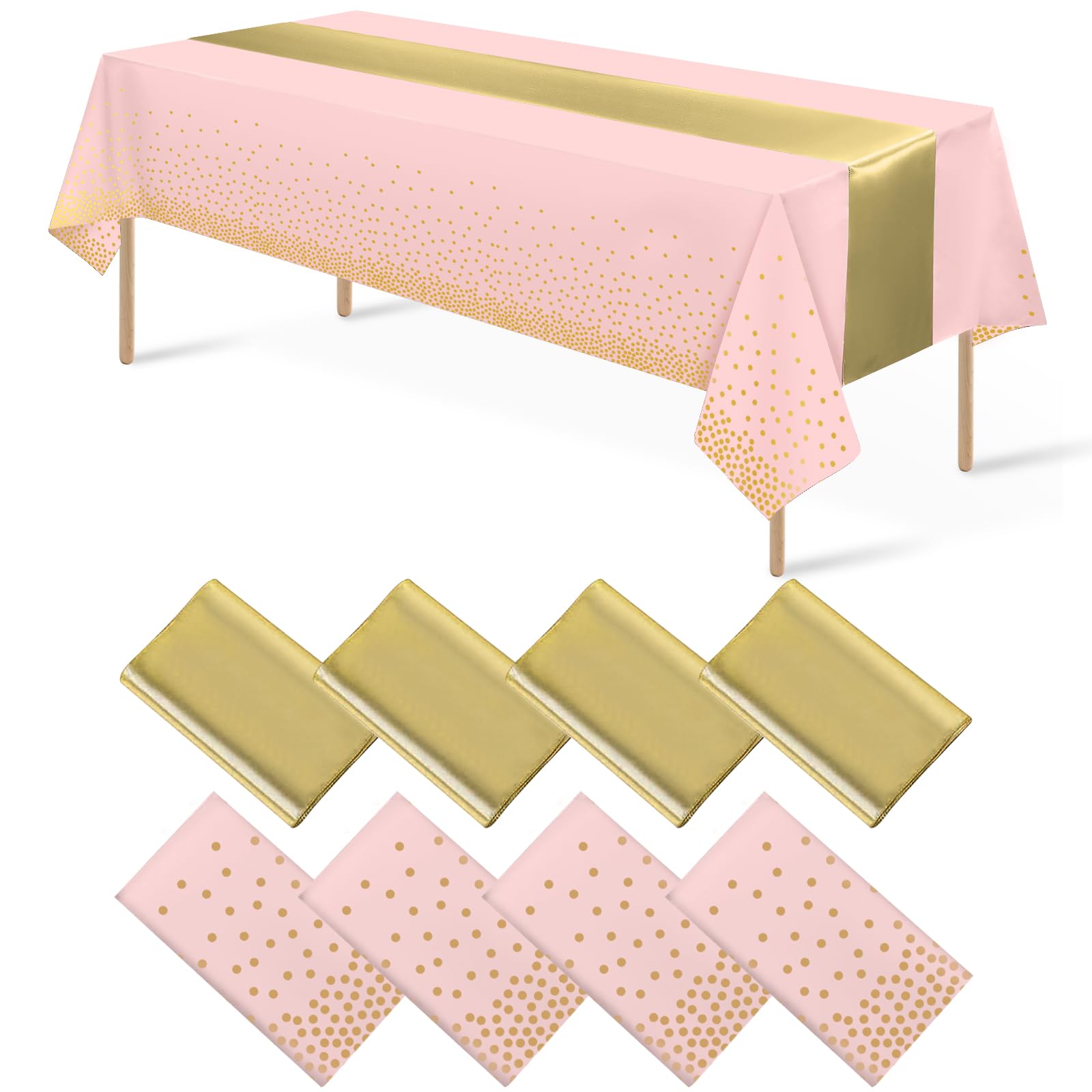 What you will get: the package includes 4 pcs pink and gold confetti dot plastic tablecloth and 4 pcs gold satin table runner, specific color as the picture shown, nice combination for you to use in daily life or important occasions enhancing the atmosphere for your event.