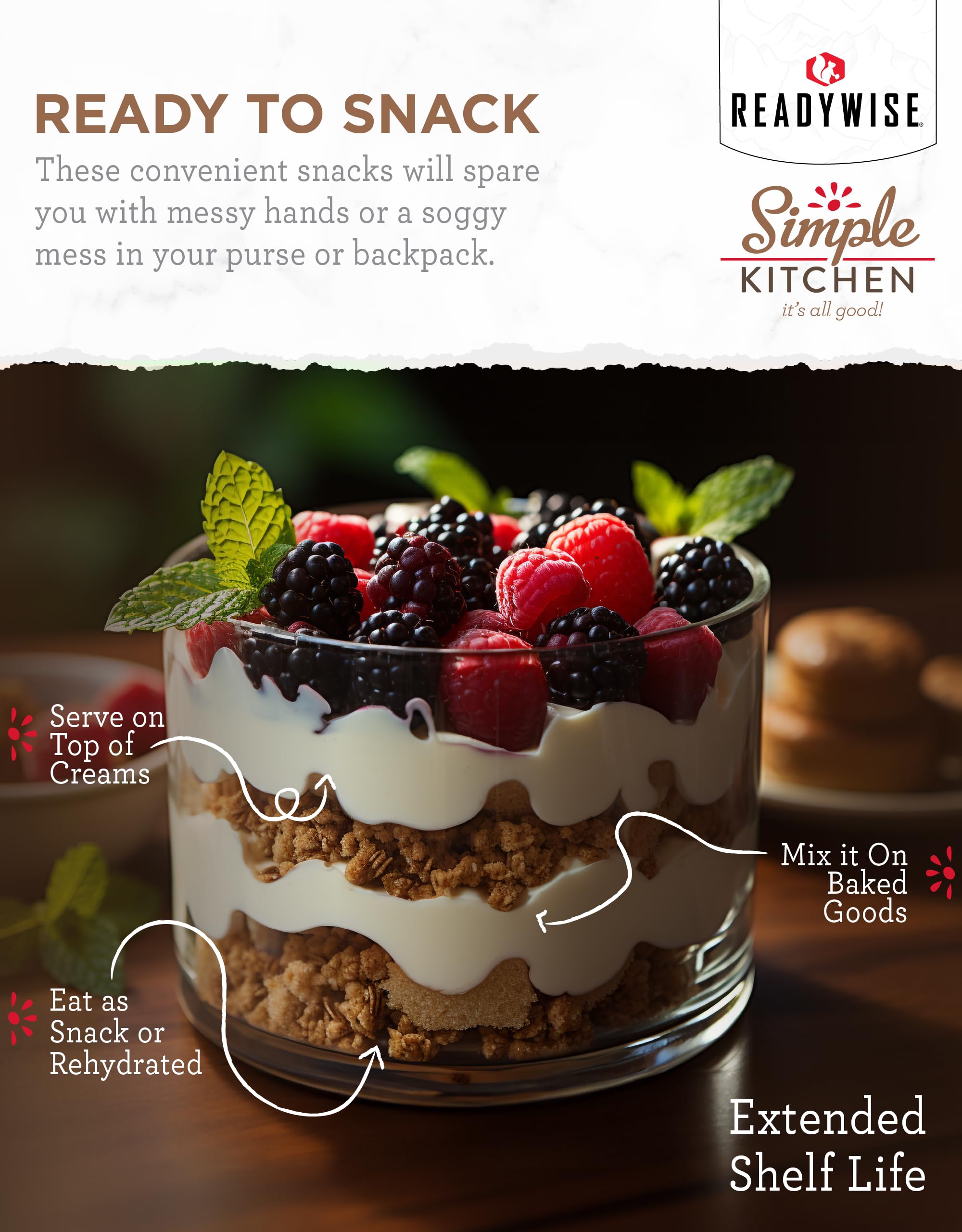 SURVIVAL FOOD ESSENTIAL: Be prepared with our freeze-dried and dehydrated raspberries, a versatile ingredient for everything from desserts to soups. Your survival food stash isn't complete without them.
