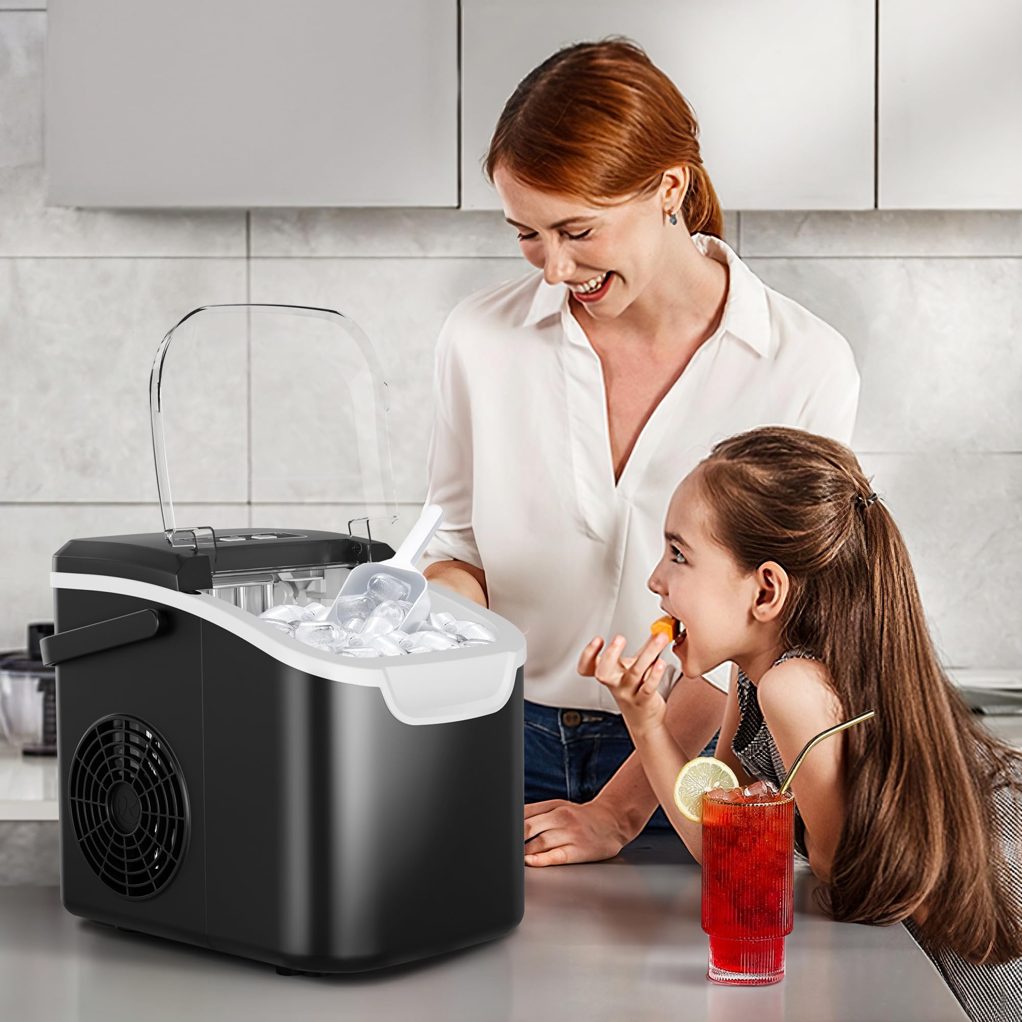 【Quiet and Energy Efficient】Equipped with R600a efficient compressor, quickly complete the ice, providing you with the best quality ice to meet your different needs, it is perfect for beverages and food. It operates at less than 40dB, normal noise, to ensure a quiet environment,which means you can do anything without interference