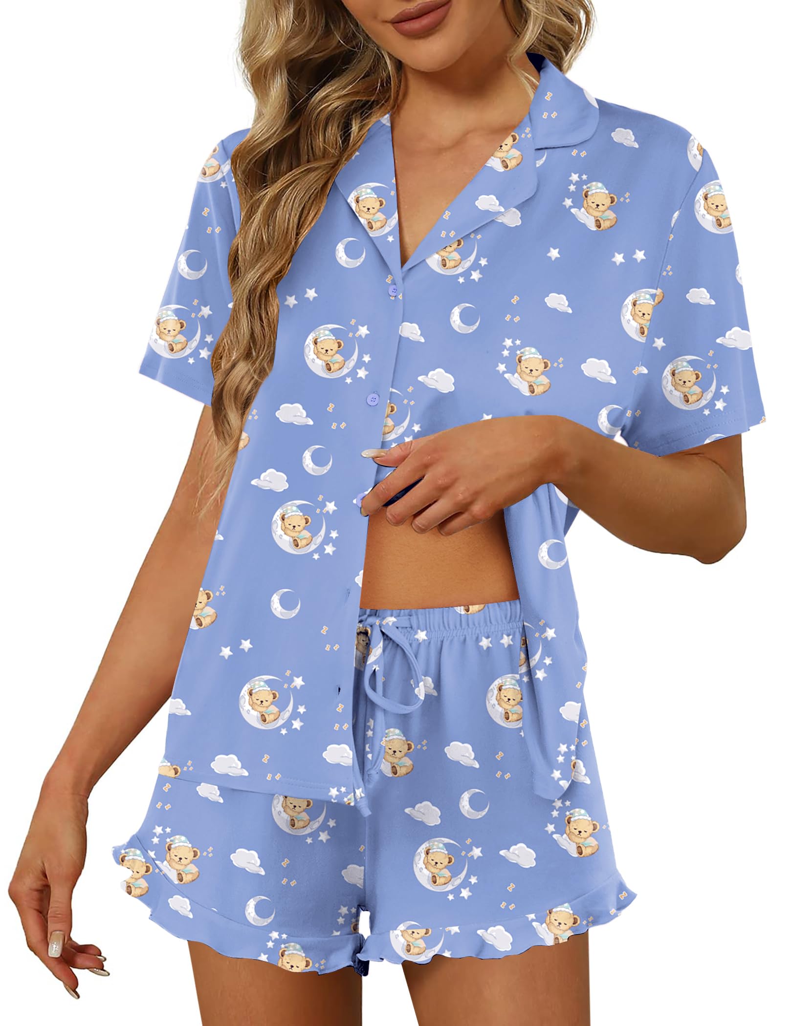 【Pajama Bottoms】:Two piece pajama set for women featuring classic casual loungewear set style, featuring short sleeve top and pants for relaxed fit, boxer short with drawstring elastic waist to make relaxing as comfortable as possible