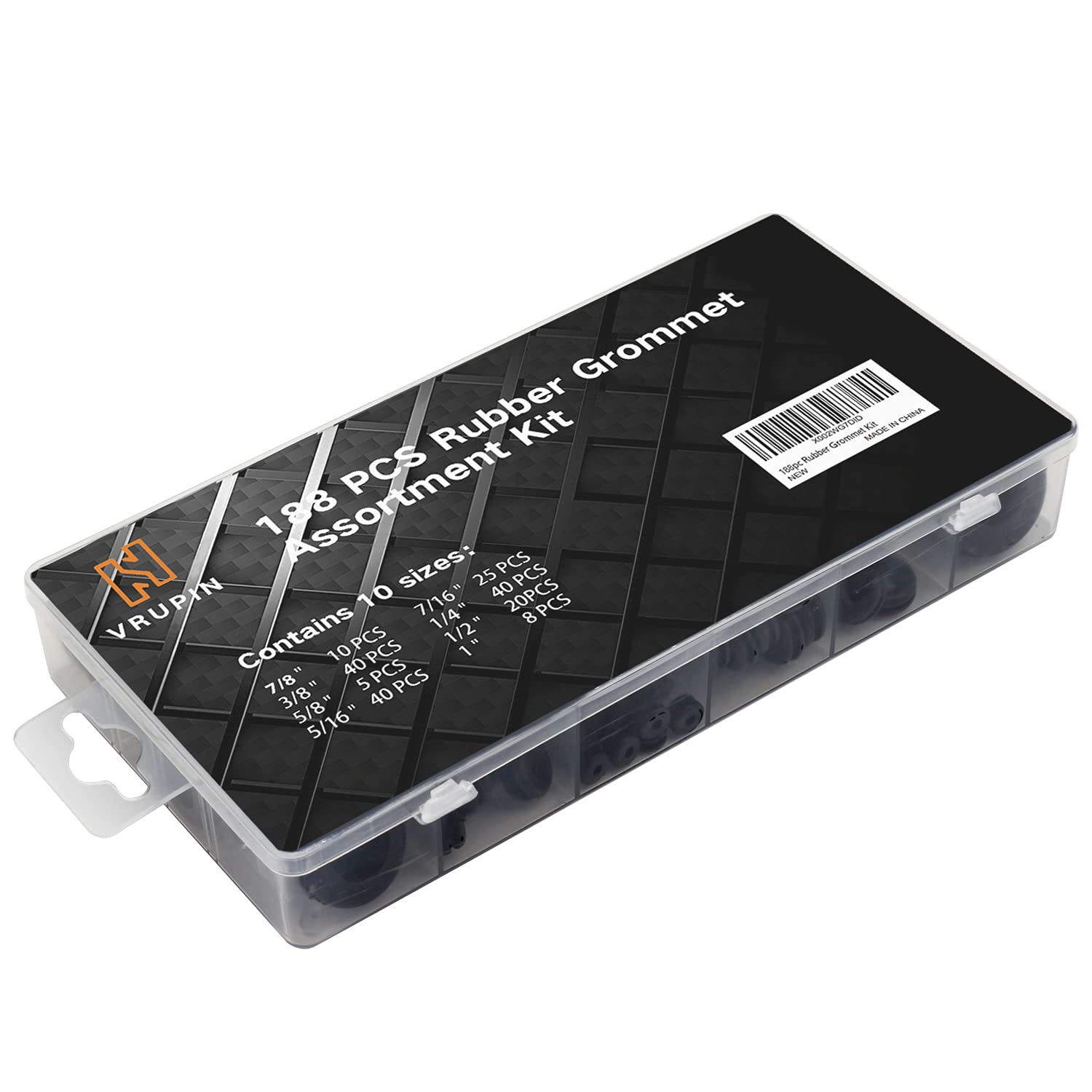 Vrupin 188 Pcs Rubber Grommets Kit - Rubber Washers for Wiring - 10 Different Sizes(1/4", 5/16", 3/8", 7/16", 1/2", 5/8", 7/8", 1" Inch)