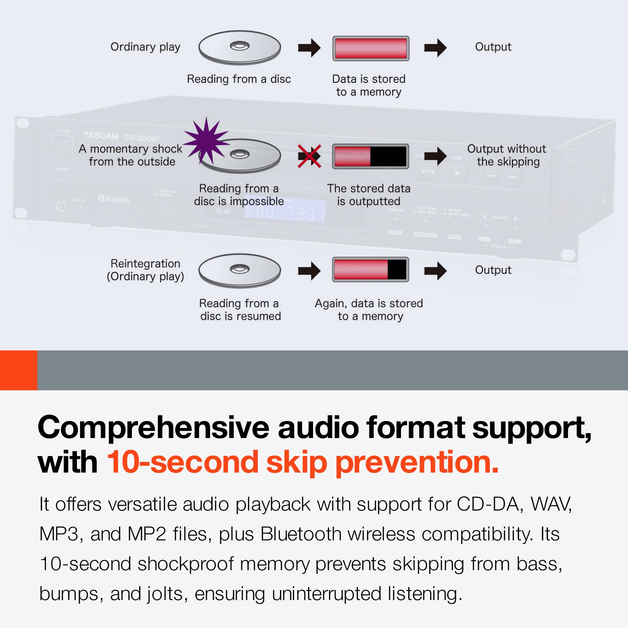 The 10-second shockproof memory prevents skipping from vibration and other causes