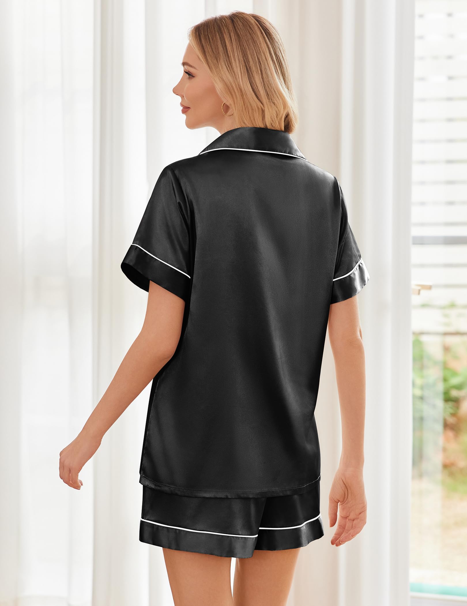 Pajama Top:Sleepwear for women with short sleeve,notch collar,button up pjs top and one chest pocket design.Skin-friendly satin pajamas for women which is great for sleeping,casual wear or lounging