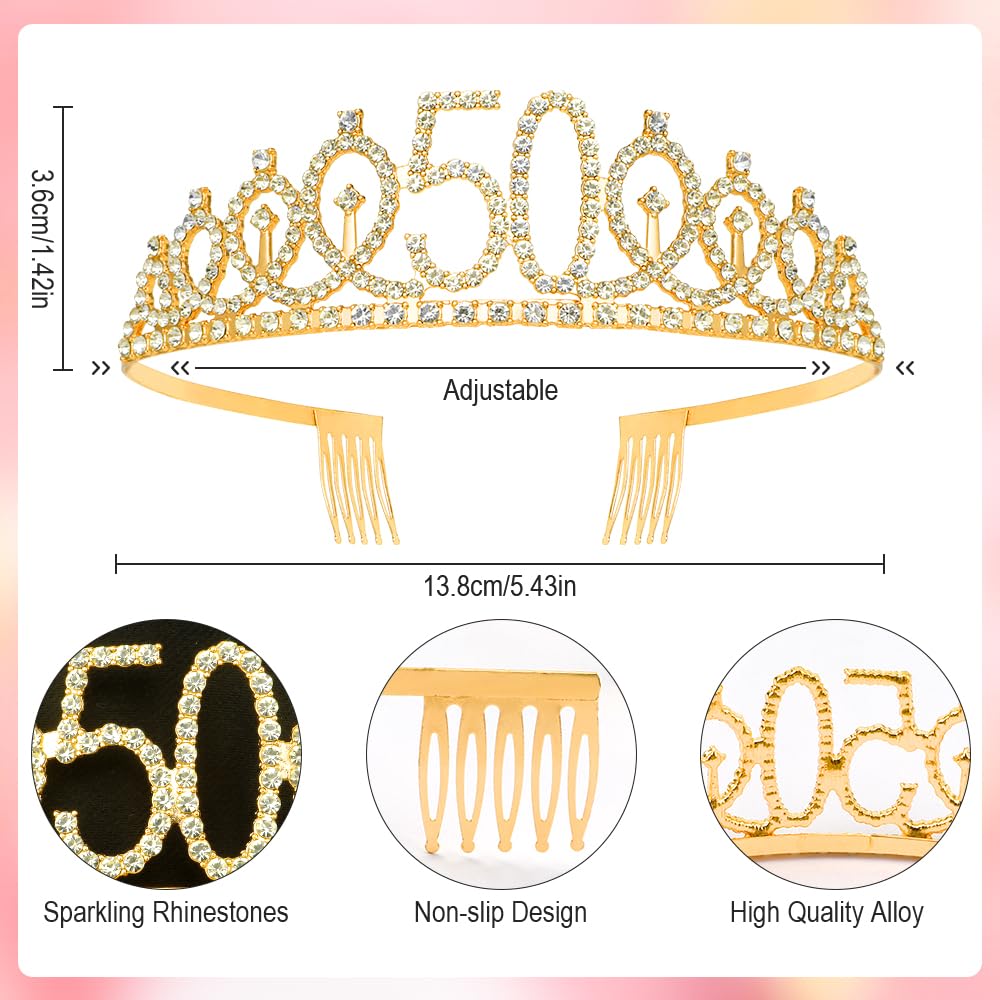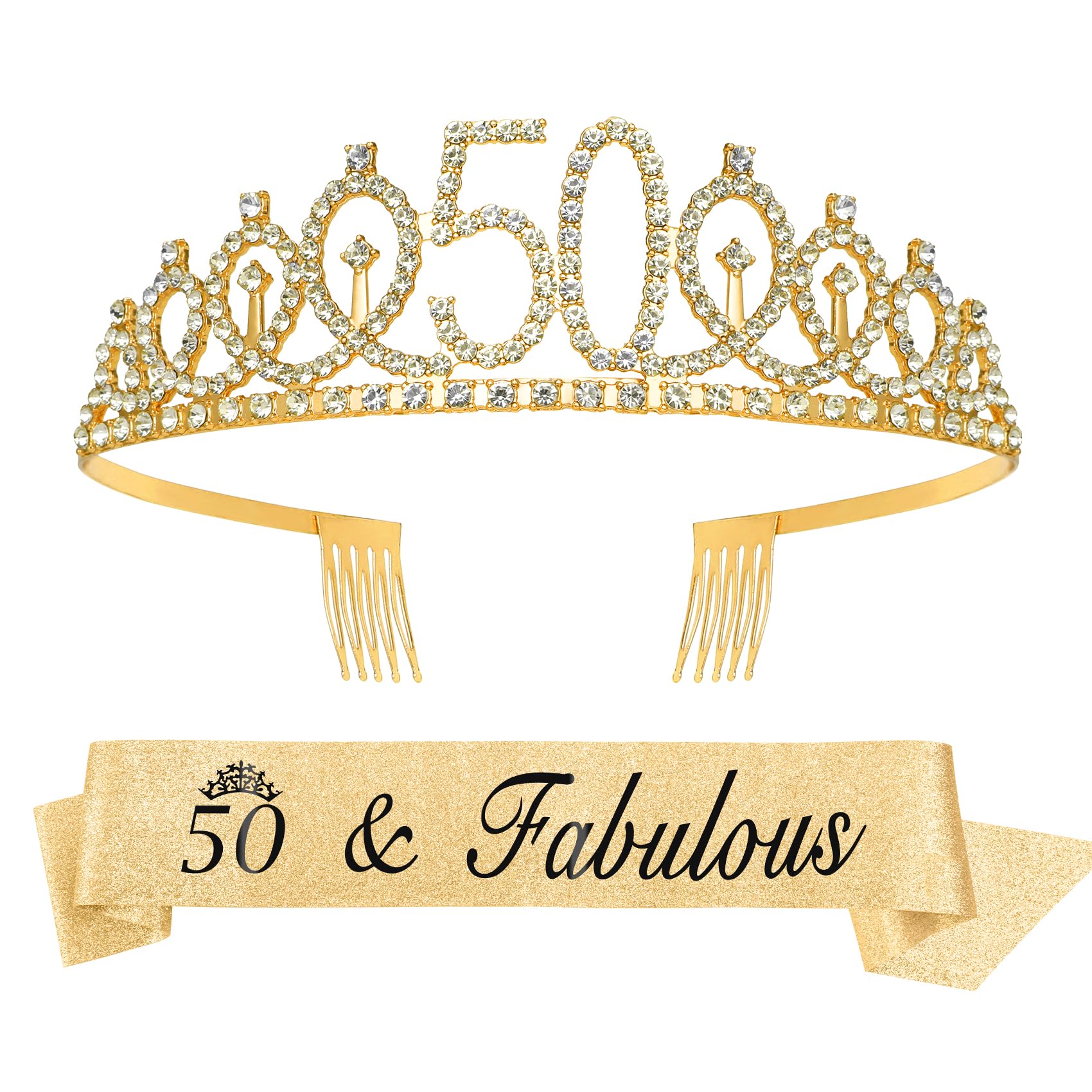 πBirthday Crown for Girls: 50th birthday crown for women, 50th birthday sash, 50th birthday tiara, 50th birthday tiara and sash for women, 50th birthday gifts for women, 50th birthday decorations women, pageant crowns for women, girls tiaras and crowns, happy birthday crown thoughtful unique gifts for colleague, educator, teacher, nurse, doctor, godmother. Perfect for special birthday girl party.