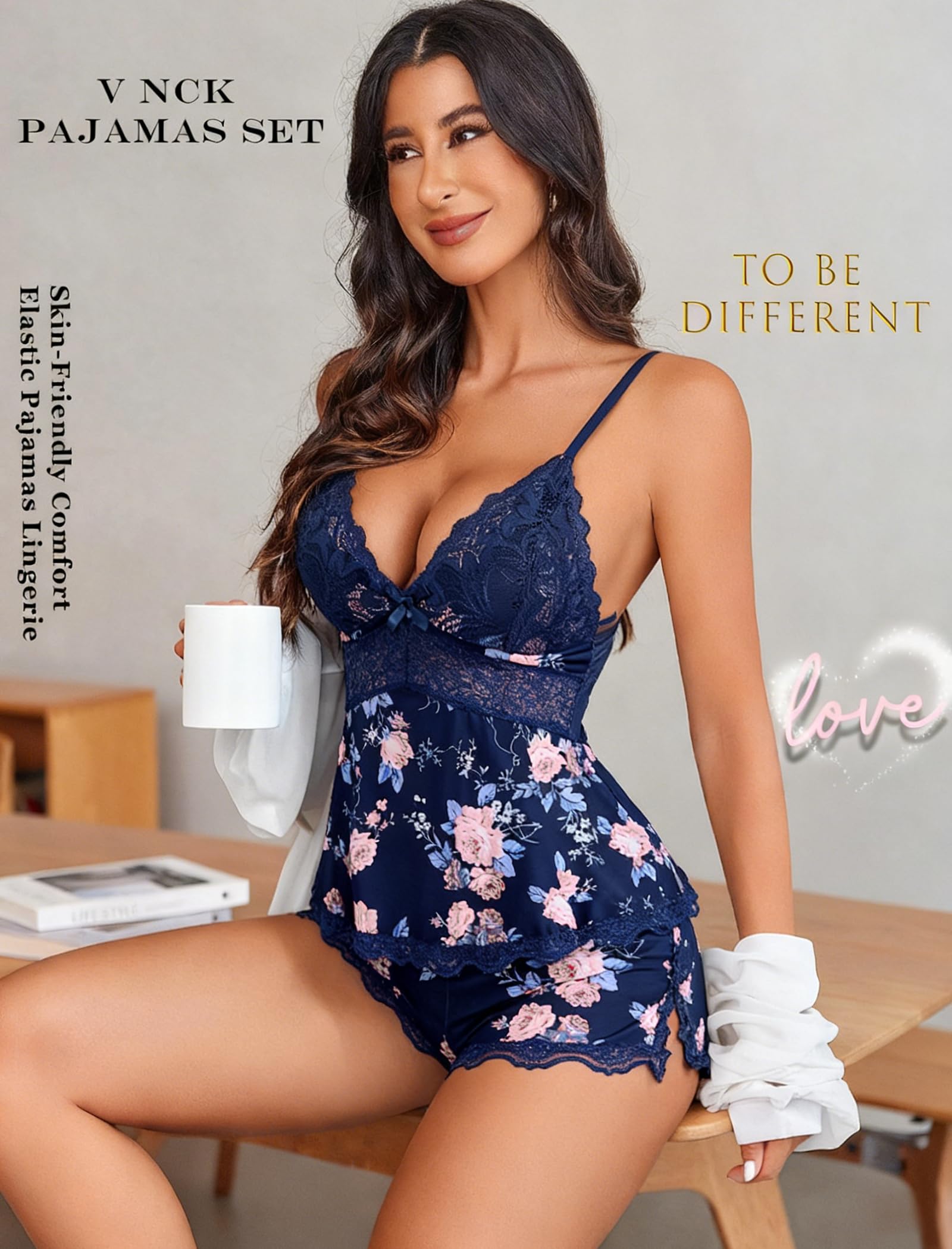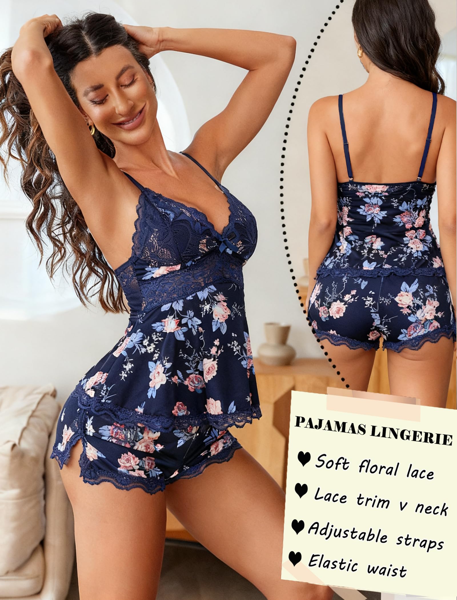 Avidlove short pajamas camisole Set featuring lace cups patchwork, adjustable spaghetti straps, drawstring waist. Very cute. Its casual style makes it not awkward even when kids at home or guest visits. The Pajamas Set is comfortable for your life