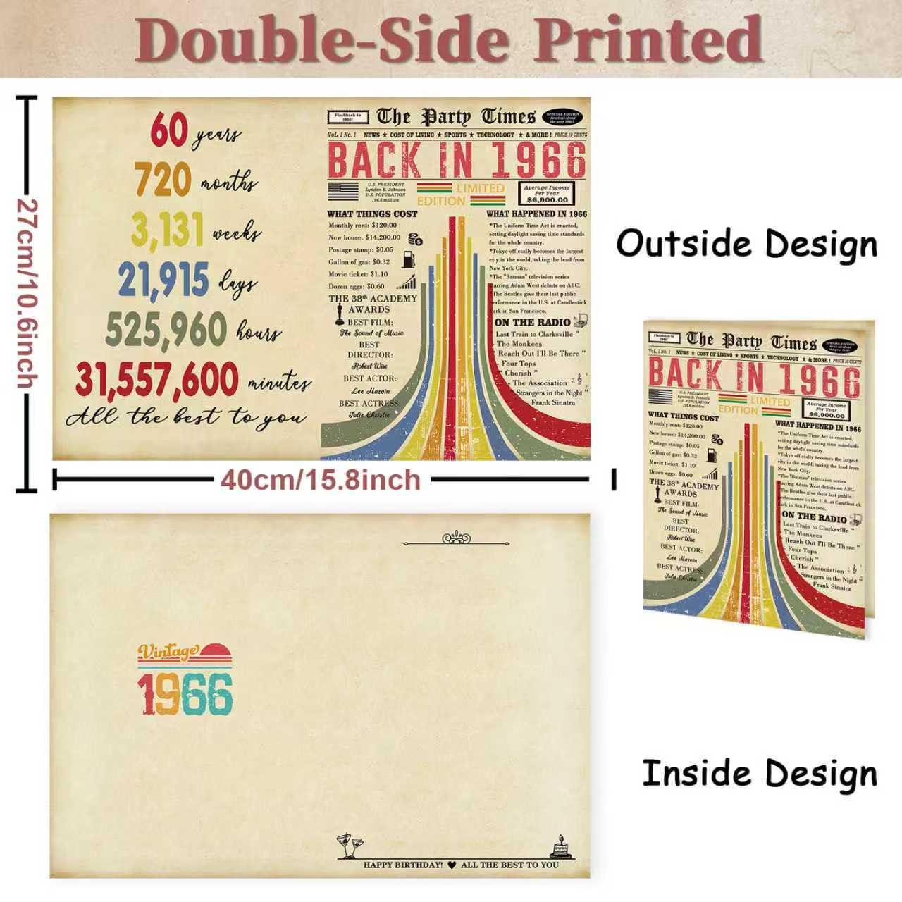 PERFECT GIFT IDEA -Find interesting 60th birthday cards for your friends. The cards contain some specific events fifty years ago, which can help you review interesting events with family and friends.