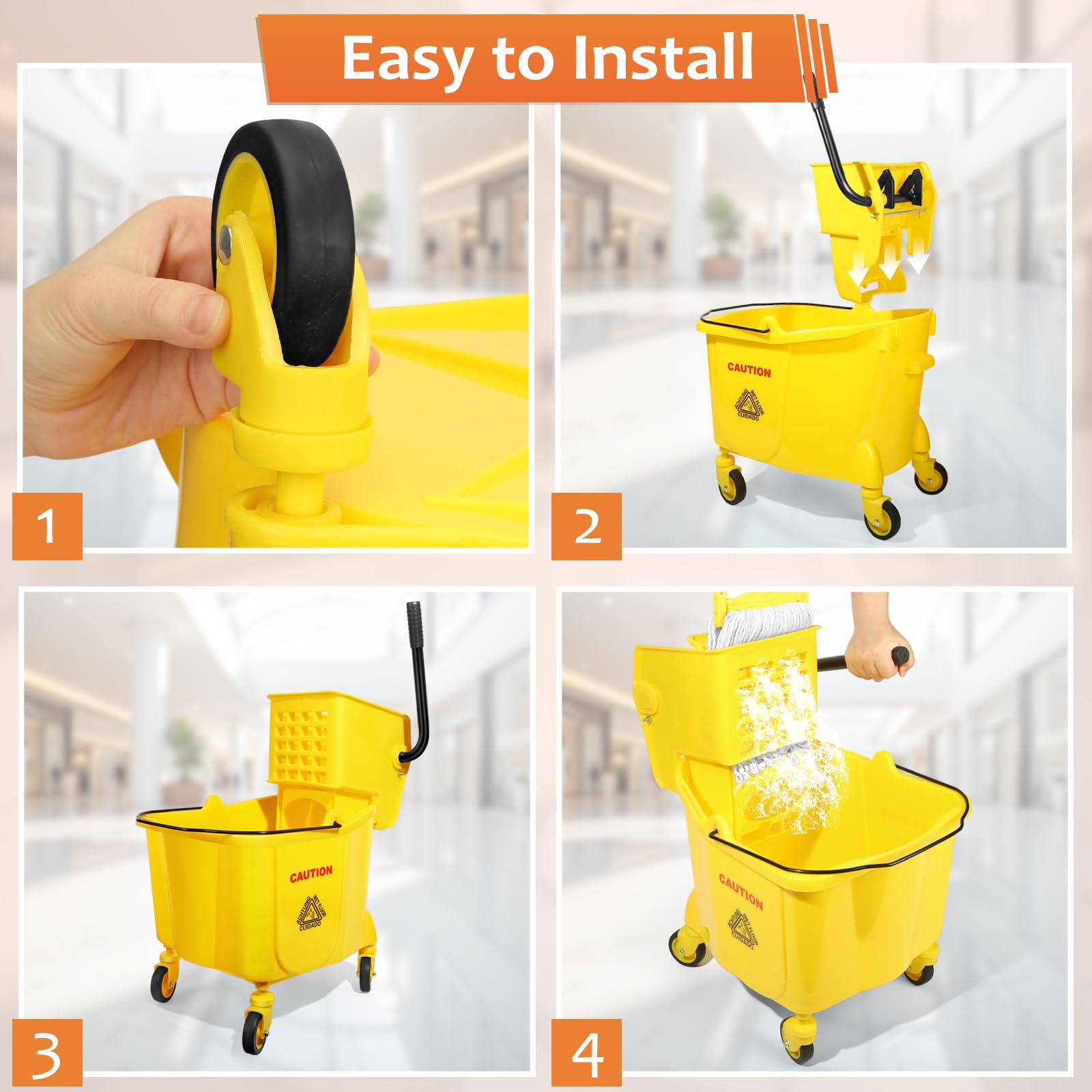 ✨Large Capacity: The yellow mop bucket with wringer has a capacity of 38 quarts, reducing the need for frequent waterchanges, improving efficiency, making it ideal for keeping clean in busy, high-traffic areas.