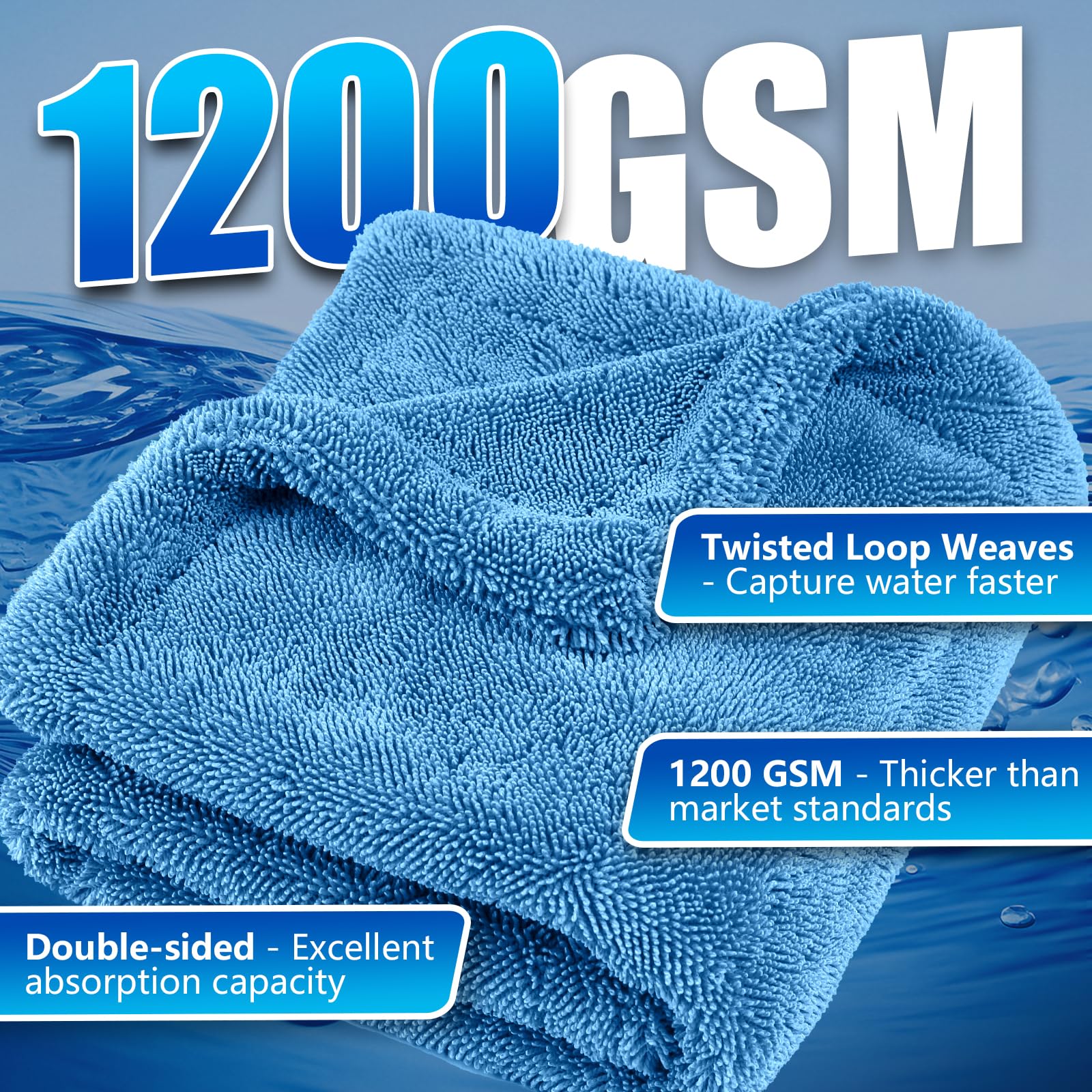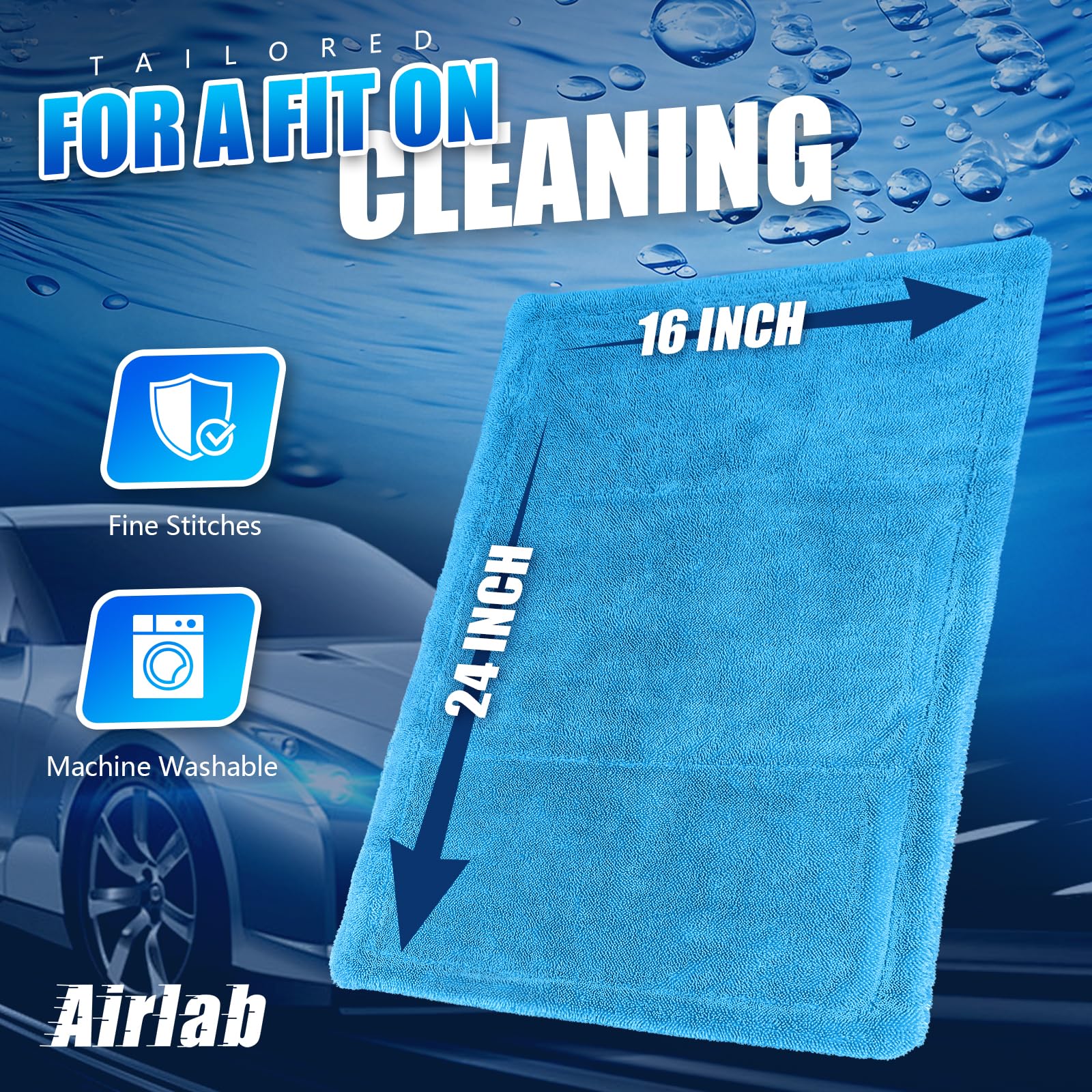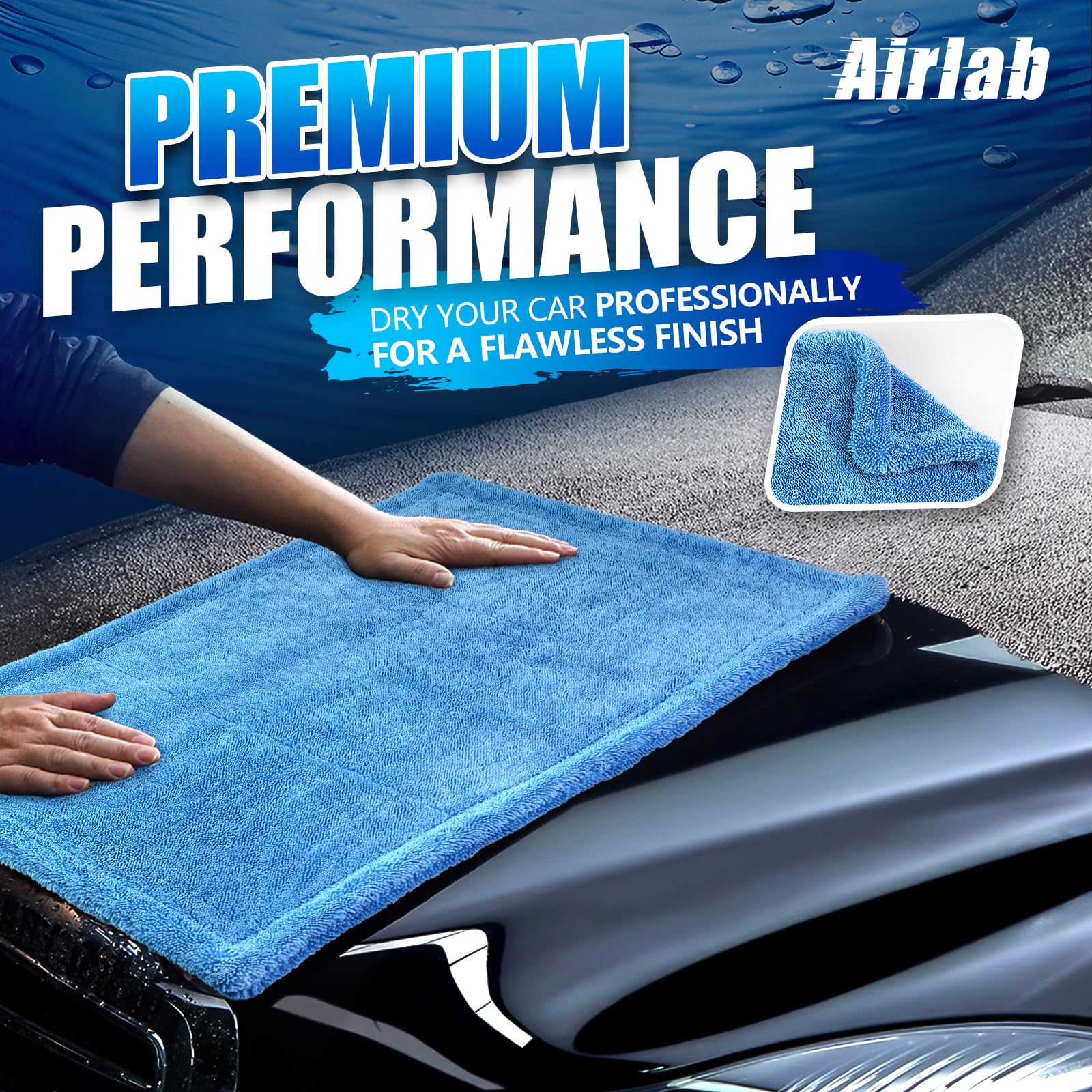 Exceptional Absorbency and Efficiency: Airlab microfiber towels for cars with its 1200 GSM density and twisted loop technology, this premium microfiber towel absorbs water rapidly, drying your entire vehicle in a single pass. No more struggling with multiple towels or wringing out excess water. Experience fast, efficient drying with just one stroke