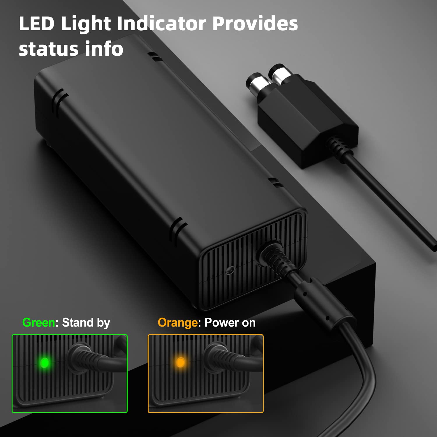 Easy to Use--xbox 360 slim power supply with LED Lights Indicate,when plug it in, the orange LED shows the adapter on stand by mode while the green LED shows that the adapter is ON.