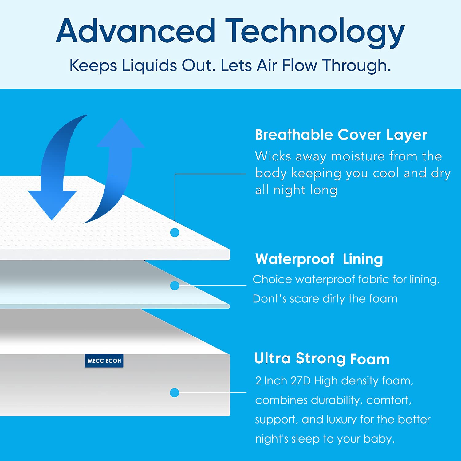 Premium Support with 2" Thick High-Density Foam: Designed with a 2-inch thick high-density foam core, offering superior support compared to thinner alternatives. Helps promote healthy spinal development for your baby.