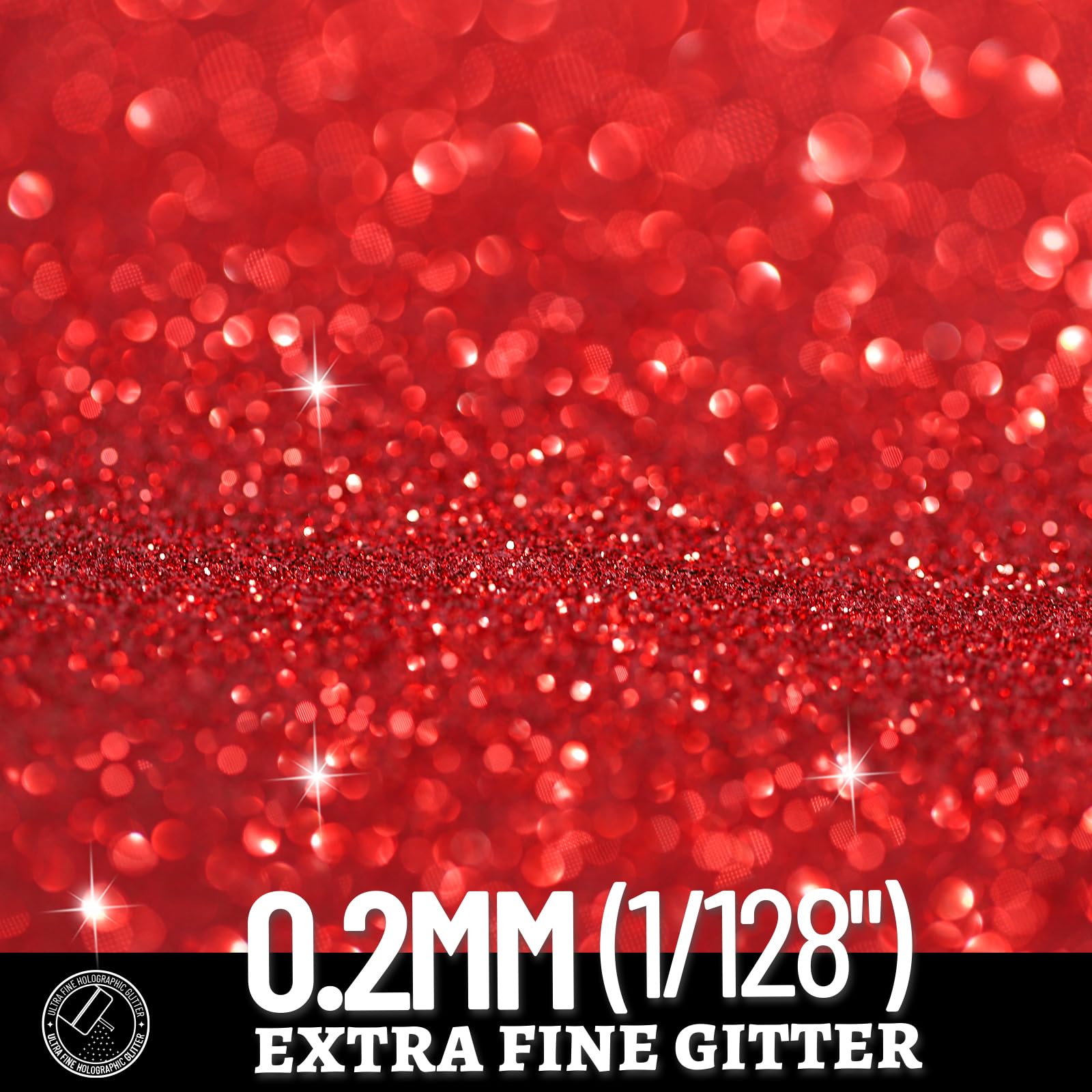 Extra Fine Glitter: 1/128” (0.2 mm) red fine glitter, can mix seamlessly with epoxy resin, acrylic paint, glue, gel nail polish, etc, bring natural & sparkly luster. Also friendly to body, nail, hair, and face, fine texture helps create natural shiny makeup.