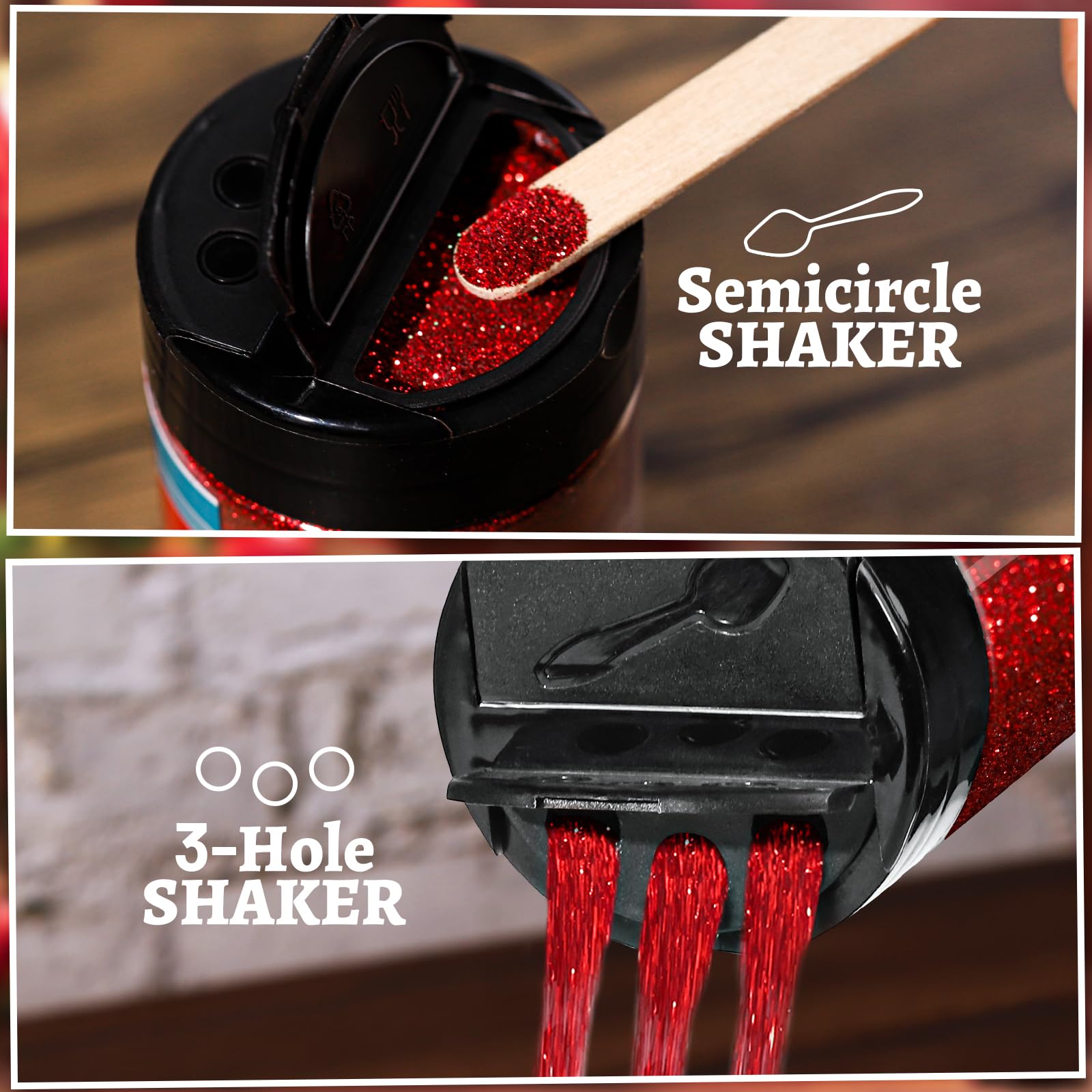 Convenient Shaker Jar: Glitter come in an easy-pour shaker Jar, with two kinds of shakers available on lid, assist to pour evenly, create smooth sparkling glitter surface while reducing waste.