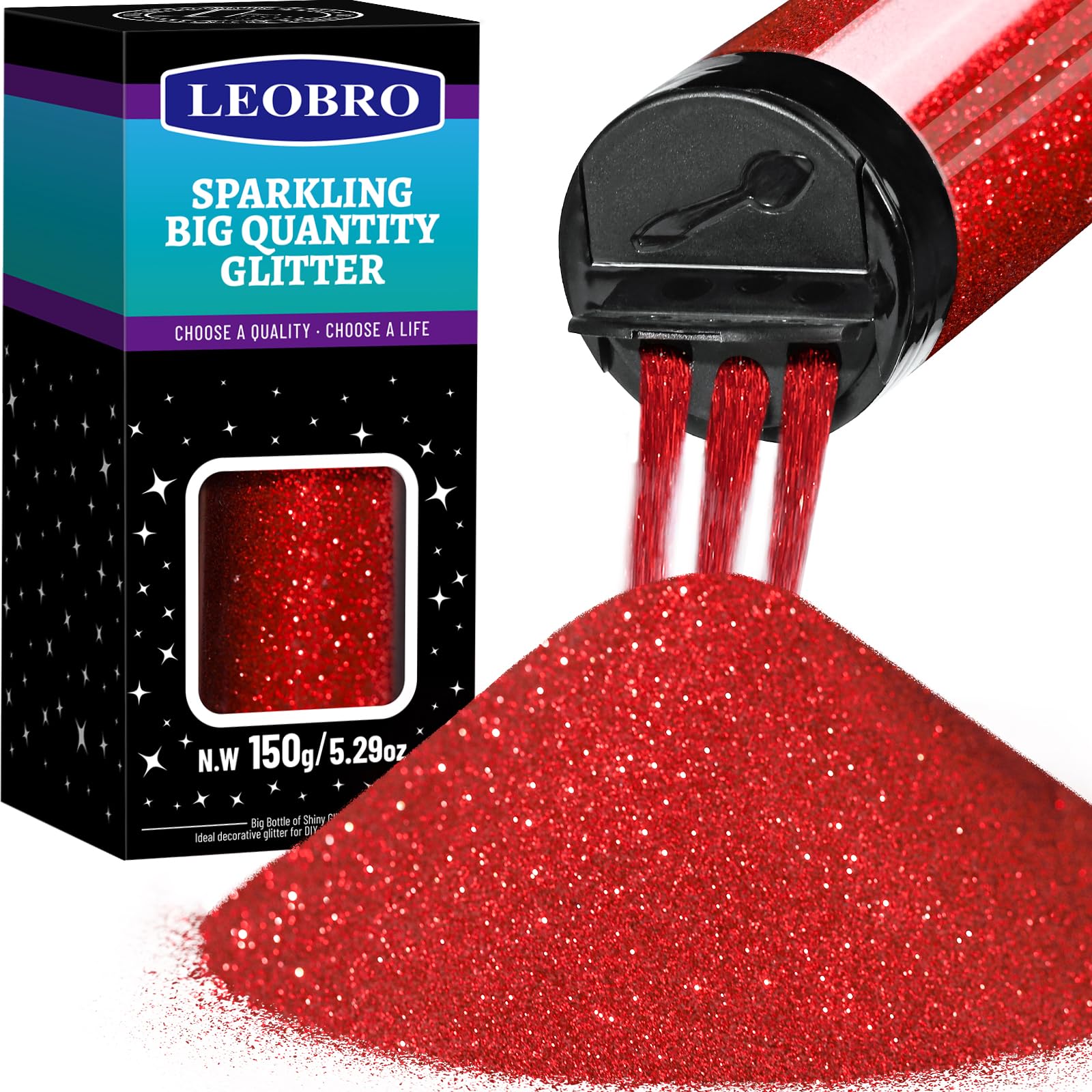 Bulk Red Glitter: 150/5.29oz red glitter, filled fully, support abundant DIY projects. Classic red color, full of vitality, shines stunningly under light.