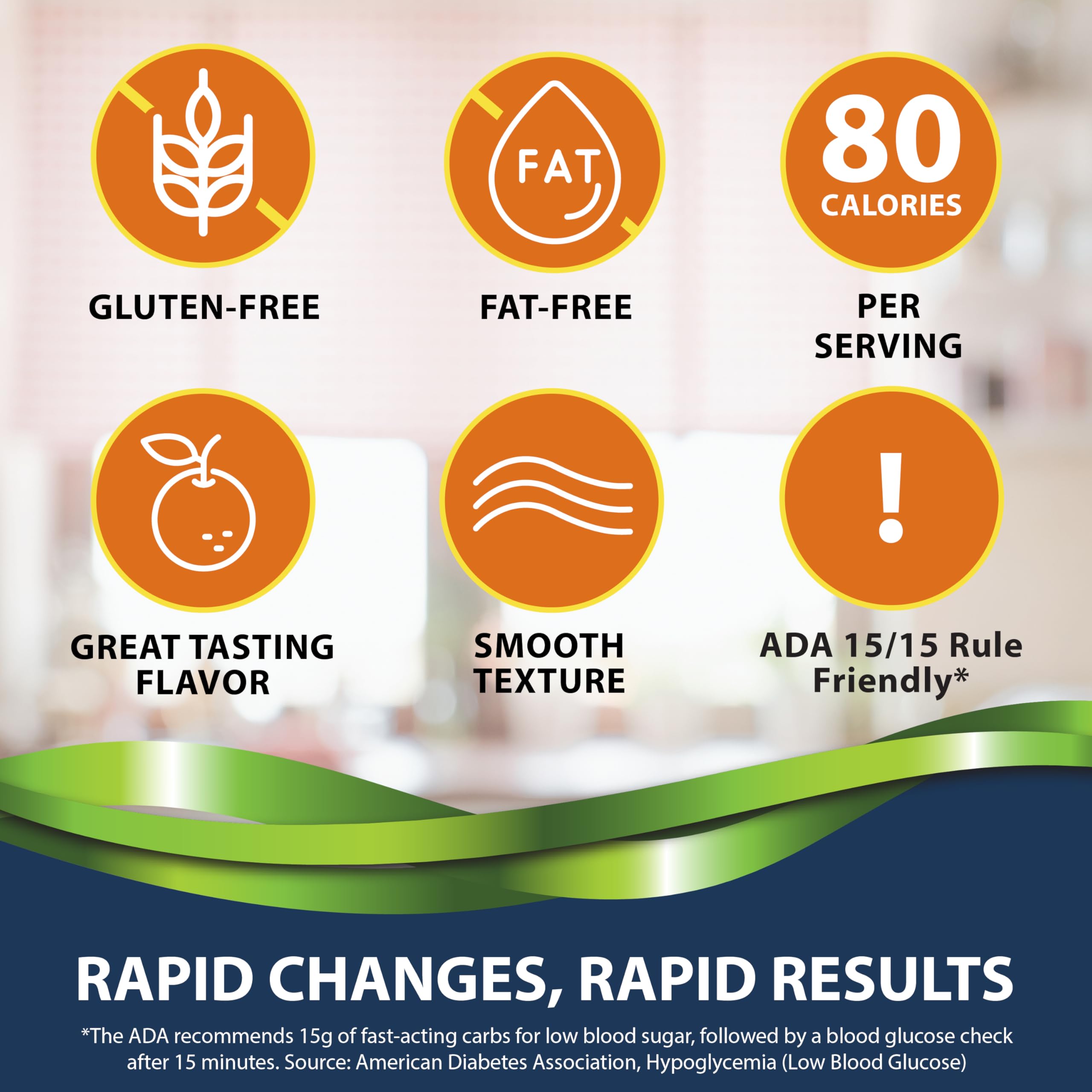 Great-Tasting Orange Flavor: A fruity, citrusy taste and smooth texture make each serving easy to swallow; Designed for those who may experience difficulty chewing or swallowing glucose tablets; Multiple flavor options available
