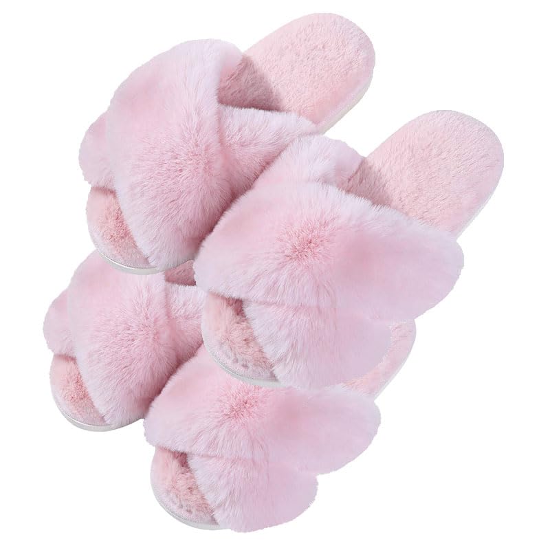 FUZZY HOUSE SLIPPERS: Fuzzy faux fur upper and footbed surround your foot in cloud comfort, making your feet cozy. A good choice for reducing muscle fatigue after a long day of work.