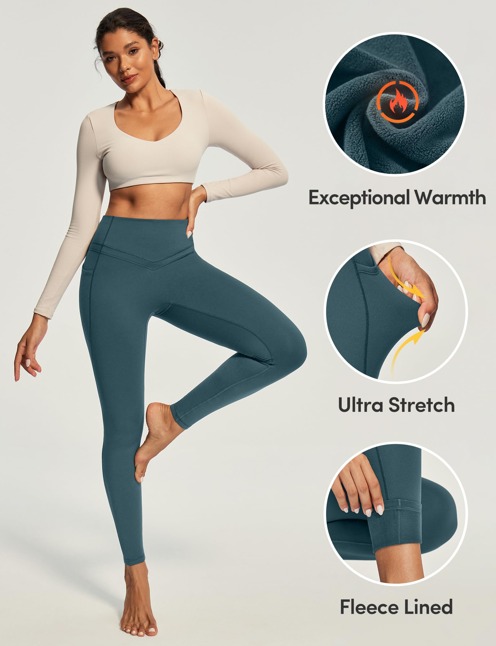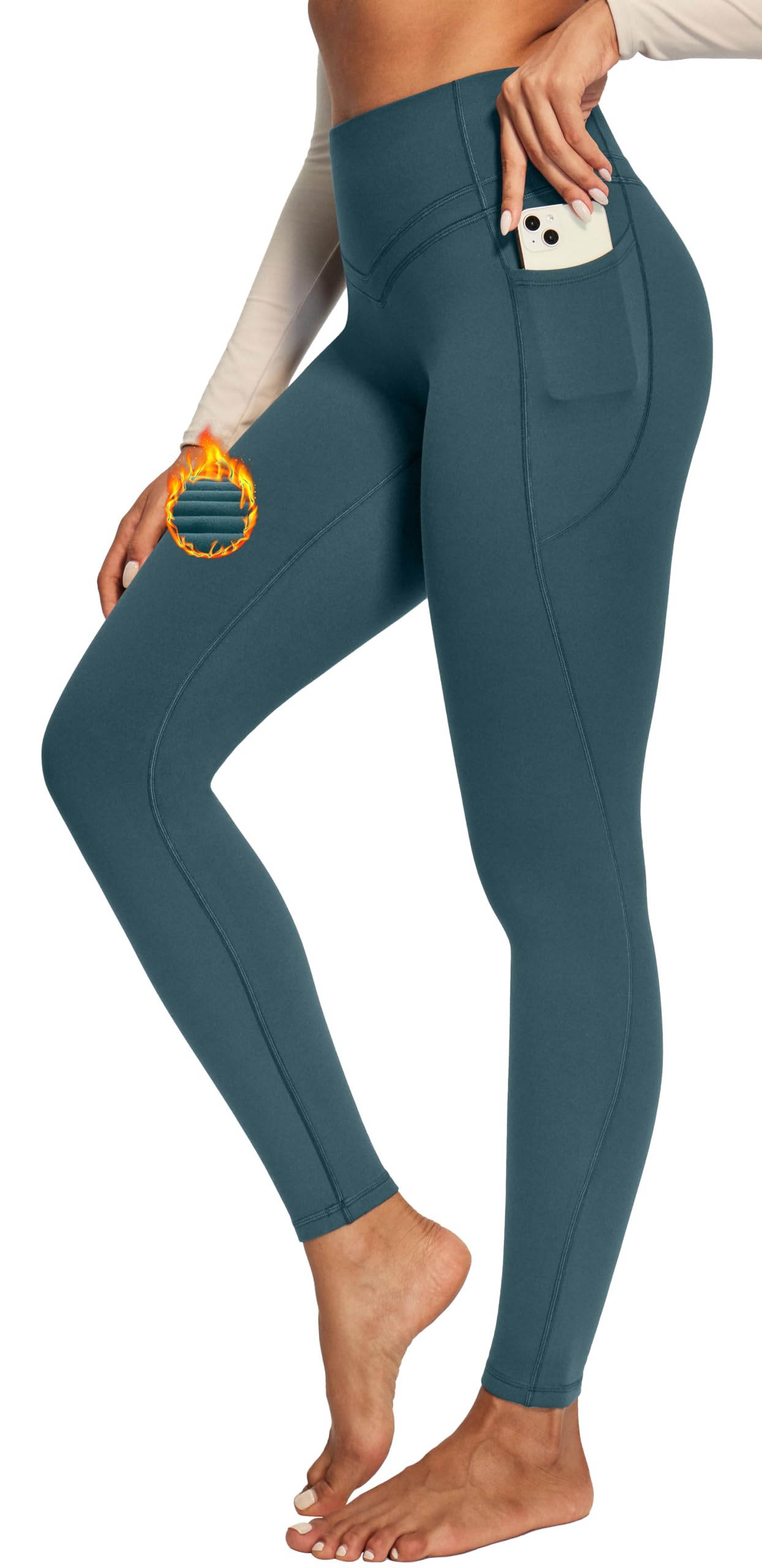 Sandwich Waistband for Tummy Control: These compression leggings for women combine a 5.9" double-layer fleece design with high-stretch mesh for tummy control that sculpts while keeping you warm. A hidden 2cm elastic band prevents slippage, ensuring these leggings for women tummy control stay securely in place during any movement without pinching or rolling