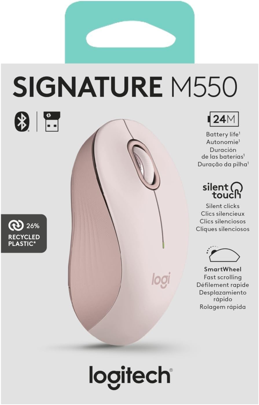 Upgrade to smarter scrolling, better comfort, and more productivity with the Signature M550. The versatile mouse features an adaptive scroll SmartWheel that delivers line-by-line precision, and auto-switches to super fast free spin mode with the flick of a finger. A choice of sizes for smaller and larger hands means there's a perfect fit for anyone. Seamless wireless connectivity and a comfort shape keep you comfortable and productive hour after hour. Logitech’s SilentTouch technology delivers silent clicks to keep you focused – while 24-month battery life** and universal operating system compatibility ensure hassle-free performance. **Battery life may vary based on user and computing conditions.