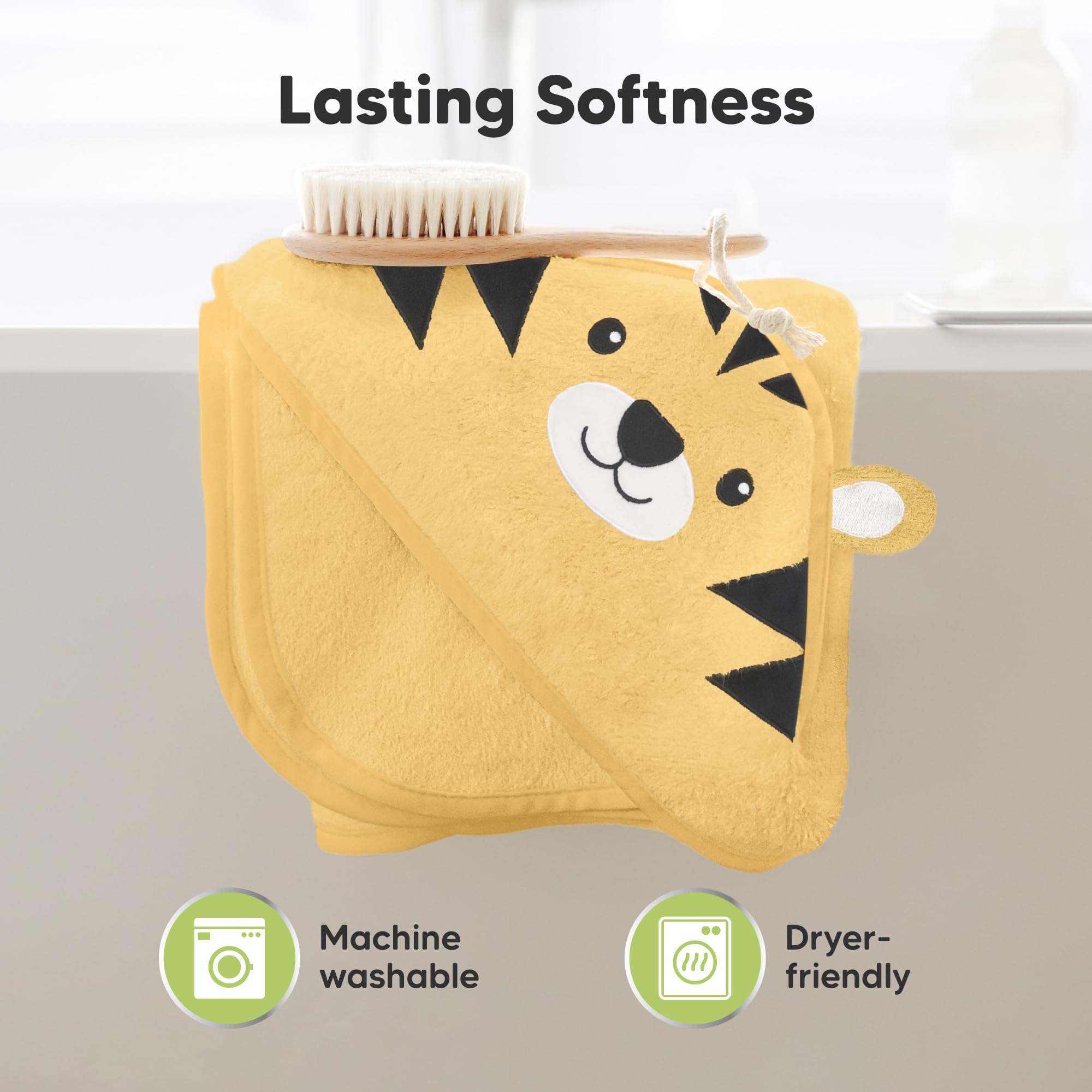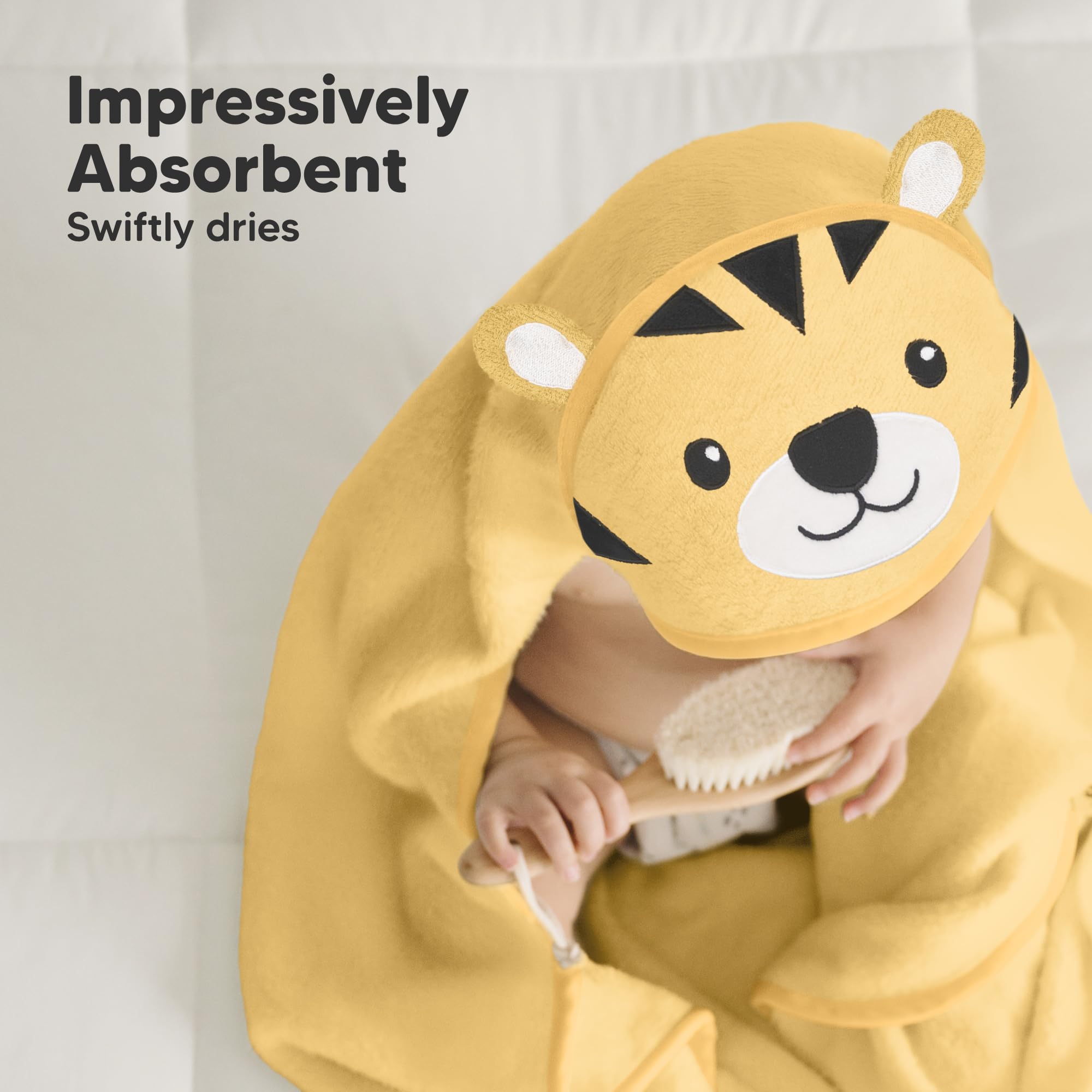 Three Times the Absorbency – Made of viscose derived from bamboo, our baby towel absorbs water three times faster than cotton baby towels, keeping baby dry and clean quickly. Machine washable and dryer-friendly, it's a must-have baby bath essential.