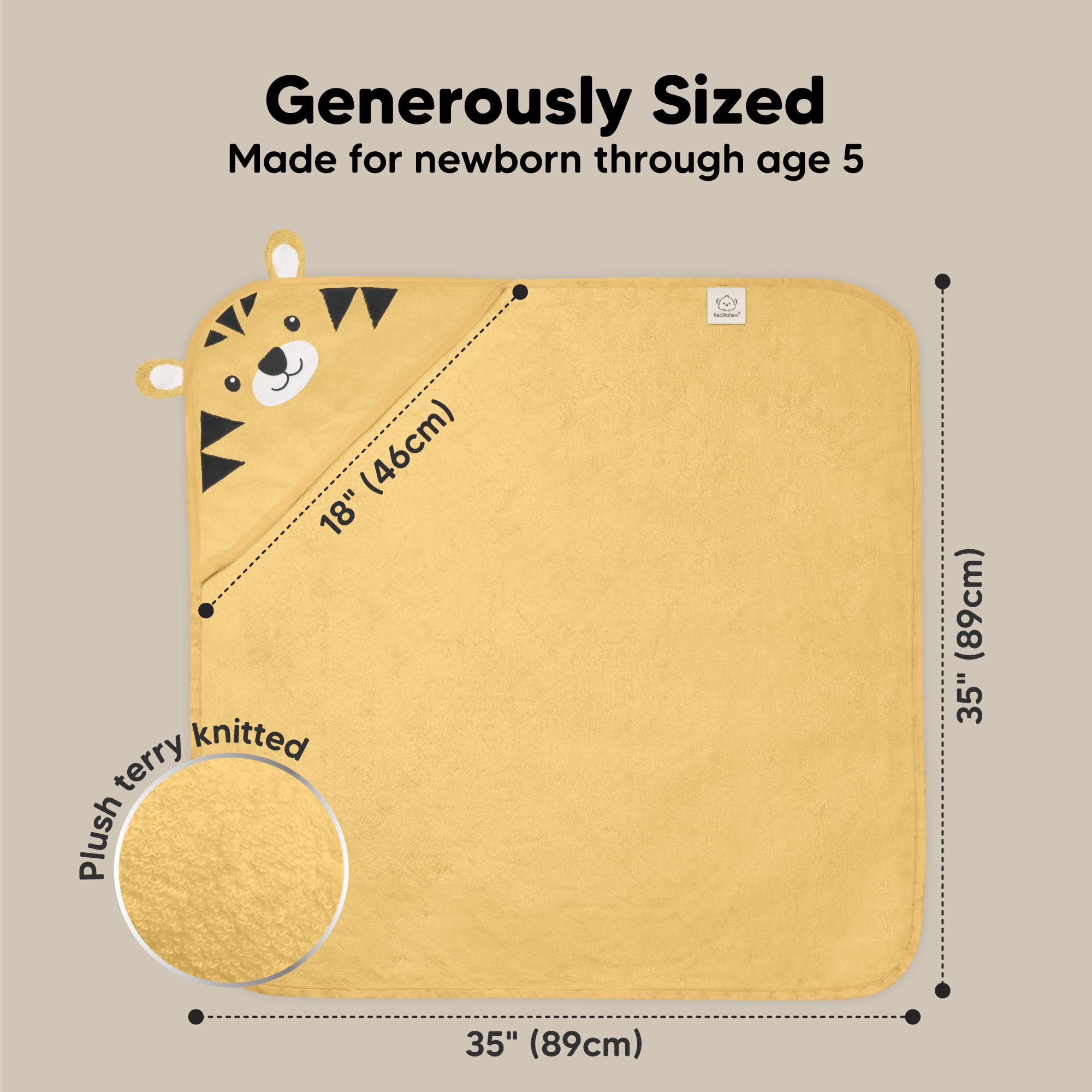Large and Durable Hooded Baby Bath Towels – Measuring 35" x 35", KeaBabies Hooded Baby Towels for newborn are built to be long-lasting even with repeated washes. The soft baby hooded towel can be use as your newborn grows into a toddler and up to age 5.