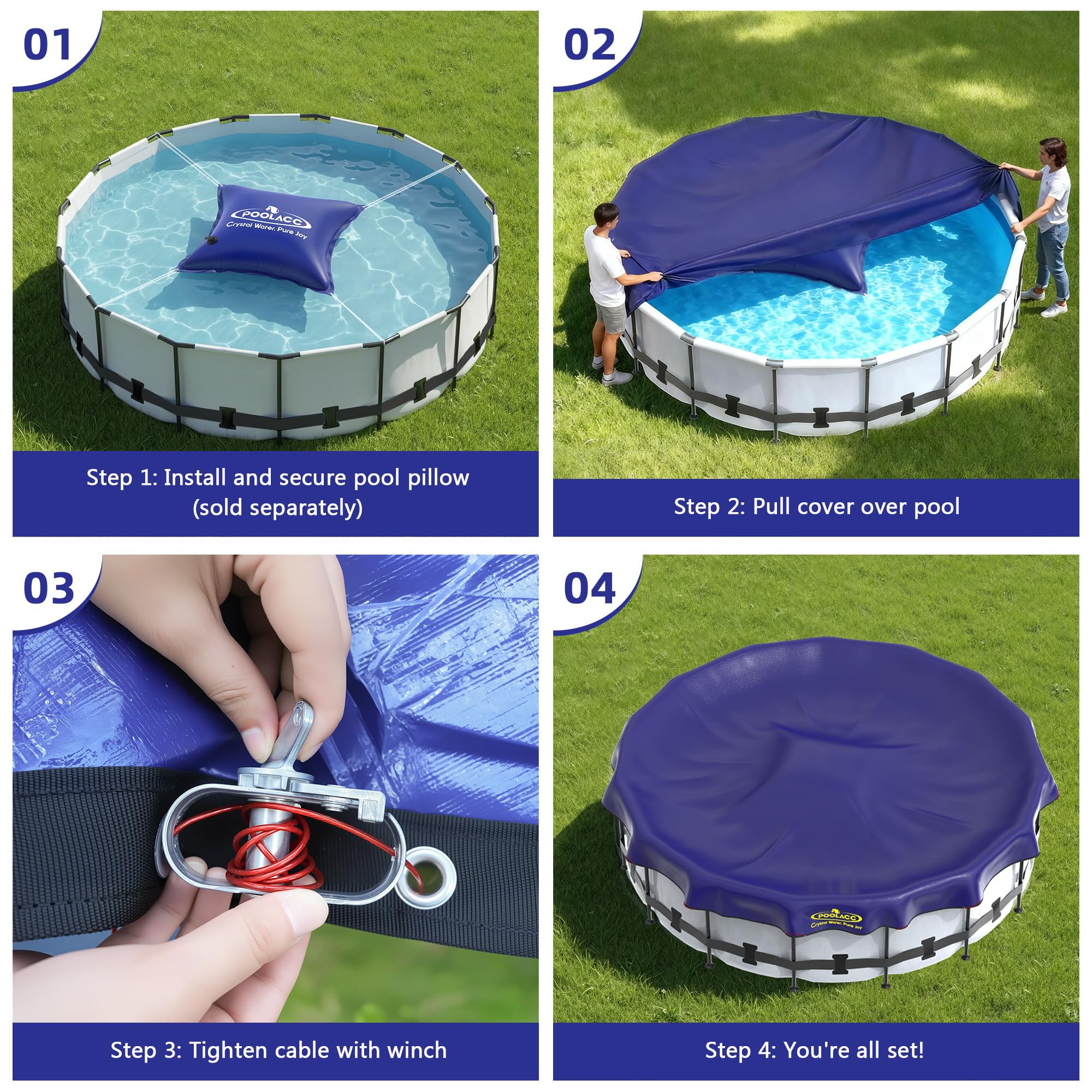 Accessories Included: Our pool cover kit comes with a skimmer sponge, 2 pool plugs and a removal tool. While our cover is durable enough, for complete winterization we highly recommend using it with our Pool Pillow (sold separately). The pillow absorbs destructive ice expansion pressure, while the cover keeps out debris. Together, they provide the ultimate defense for your pool investment