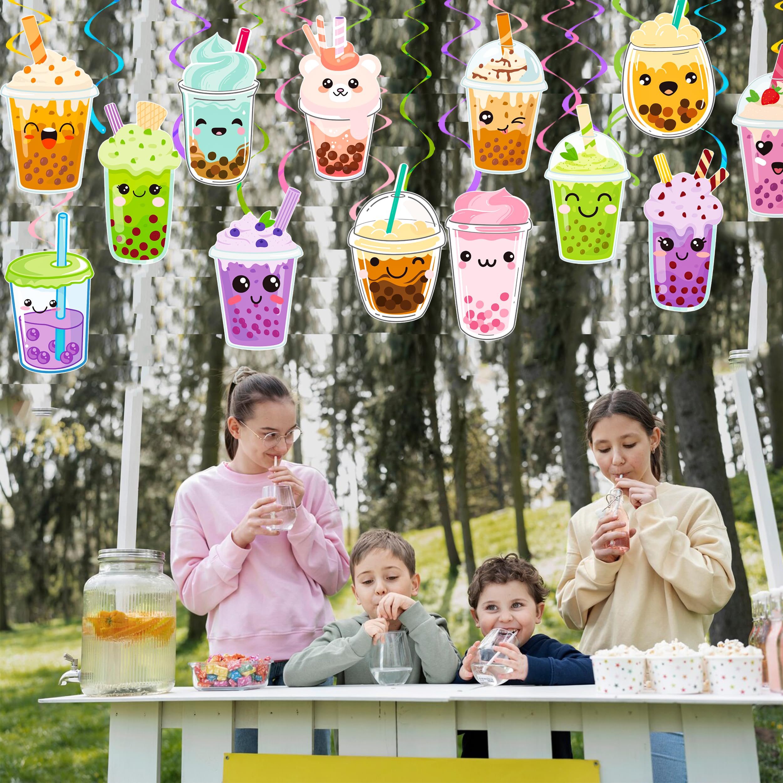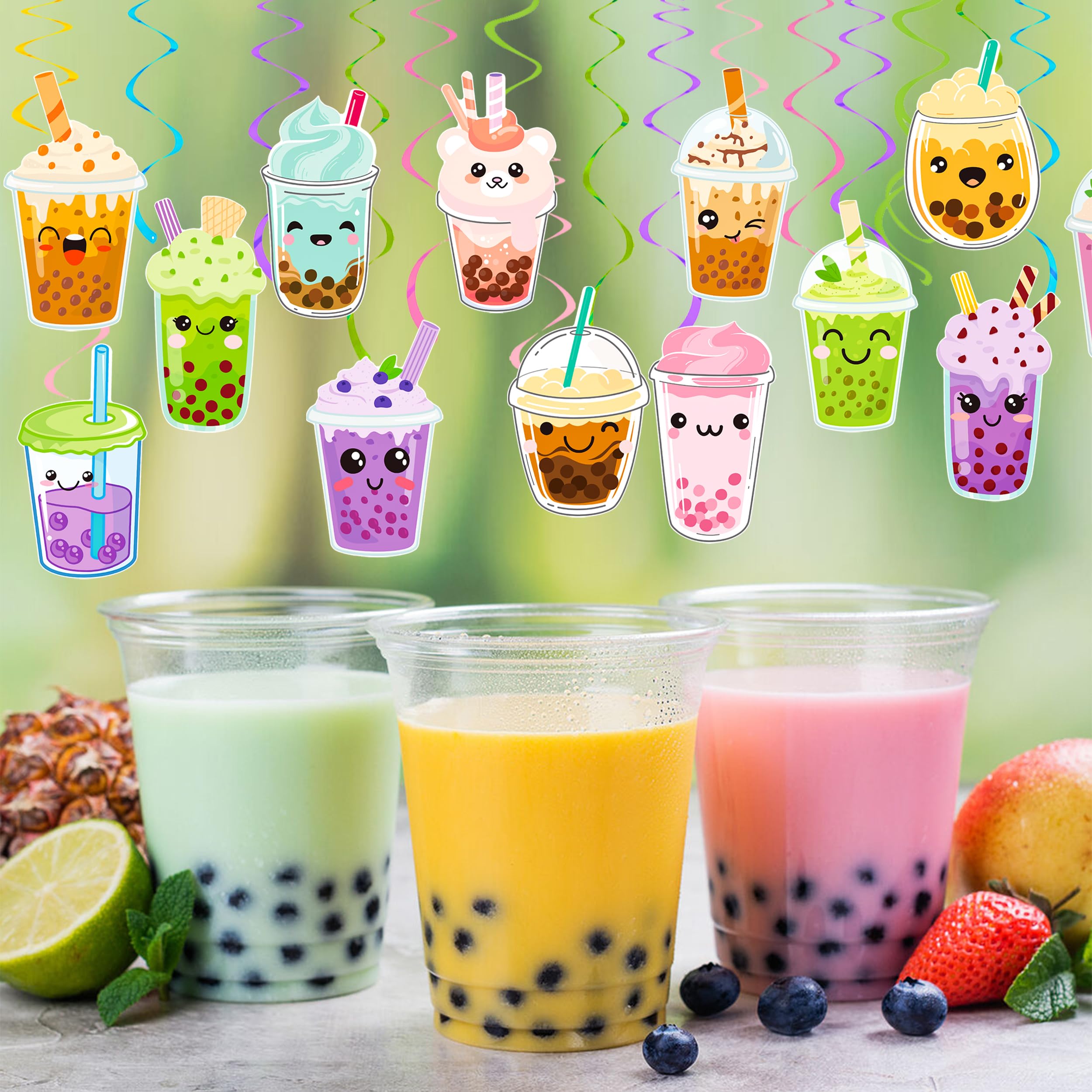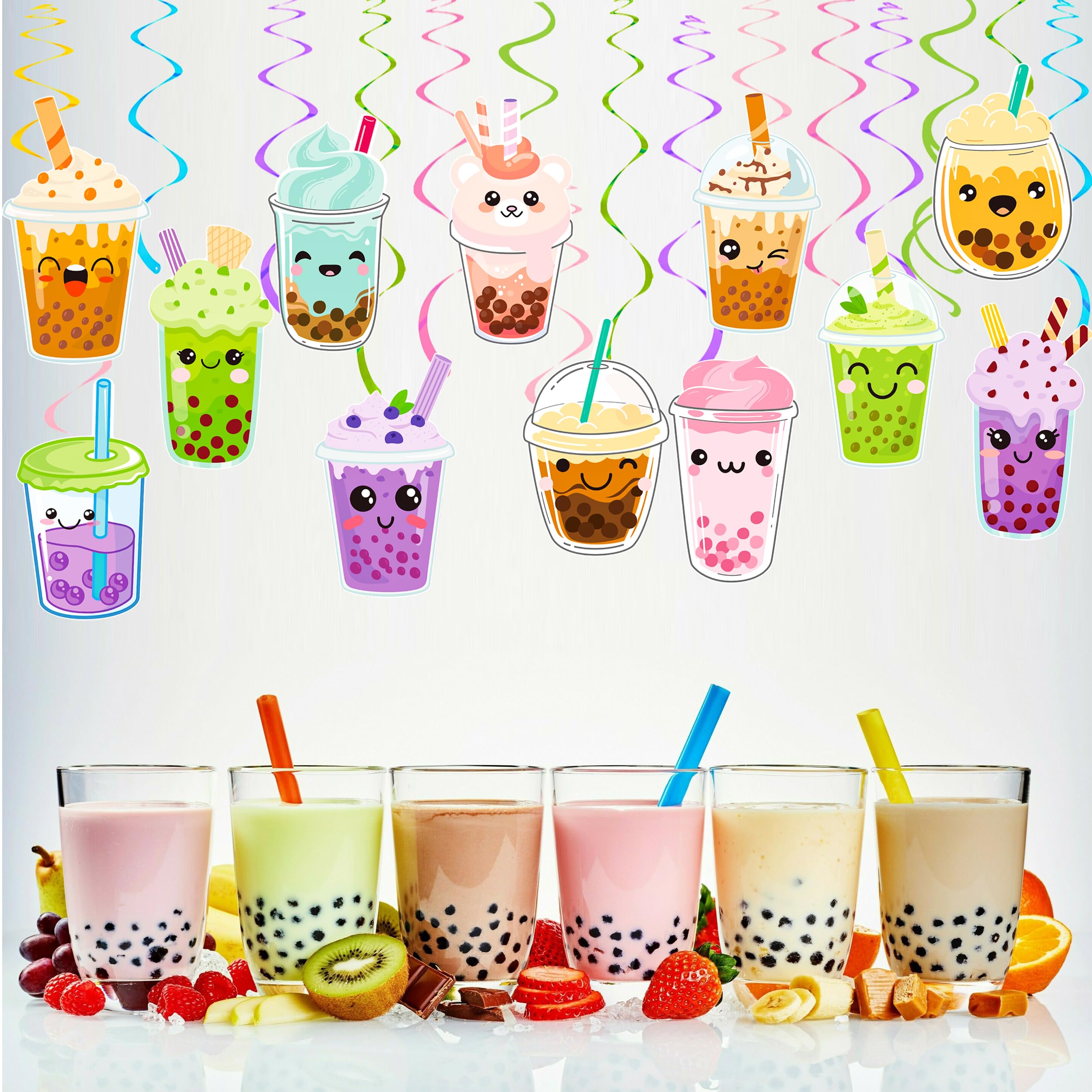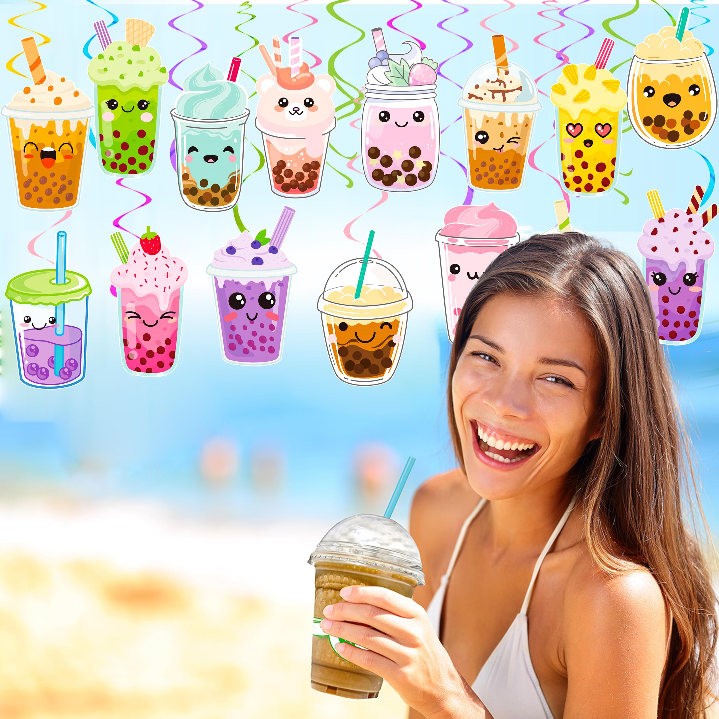 【Boba milk tea themed ceiling streamers】Our bubble tea hanging ceiling streamers are made from thick cardstock and shiny mental foil. High quality materials allow you to enjoy the party without worry. Let get fullest into the boba tea themed party right now!