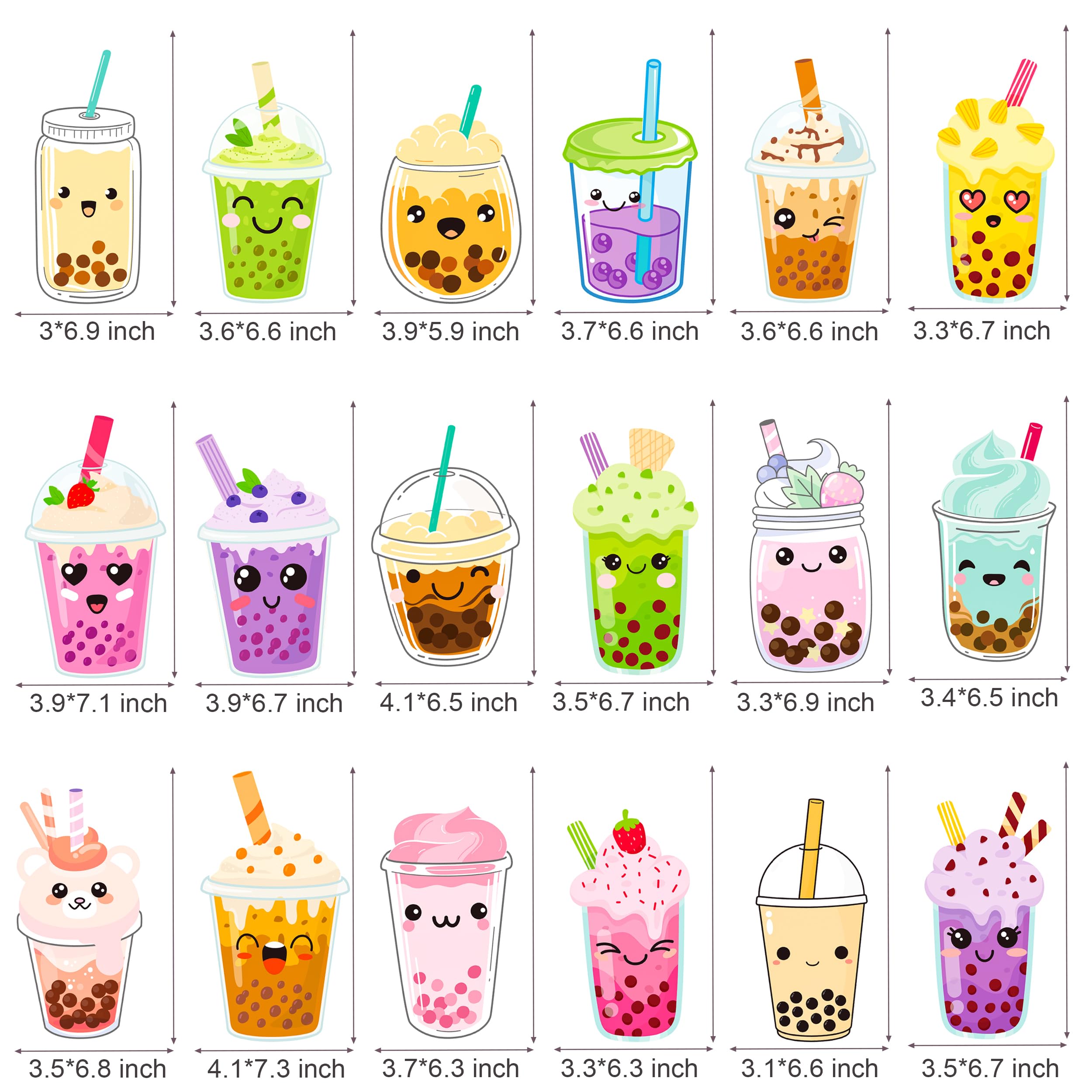 【Boba tea birthday party decorations】A variety of different shapes of teacups and tastes of milk tea, each with a happy emoji on top. Rich design enough to meet the needs of all kinds of bubble tea themed parties.