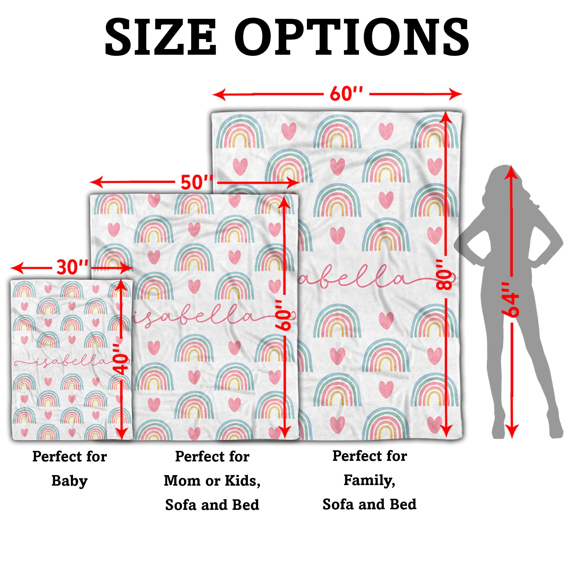 Material: Our personalized fleece blanket is made of 100% soft and silky polyester. Multiple sizes: 30’’x40’’, 50’’x60’’, 60’’x80’’ Color: Actual color may be slightly different from the image due to different monitor and light effects. Garment Care: Machine wash or hand wash. Tumble dry on low heat. Avoid direct heat. Do not use bleach. How to order: - Step 1: Click Customize Now button. - Step 2: Enter the name you would like on your blanket (you can also add the optional matching bib and baby onesie). - Step 3: Add to Cart, Place Order, and let us do the rest for you. NOTE: Please allow 0.5-2 cm differences due to manual measurement If the items you receive are damaged or wrong, please contact us with the attached pictures about the problem, we will provide you with a satisfactory solution within 24 hours.
